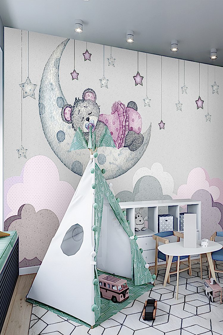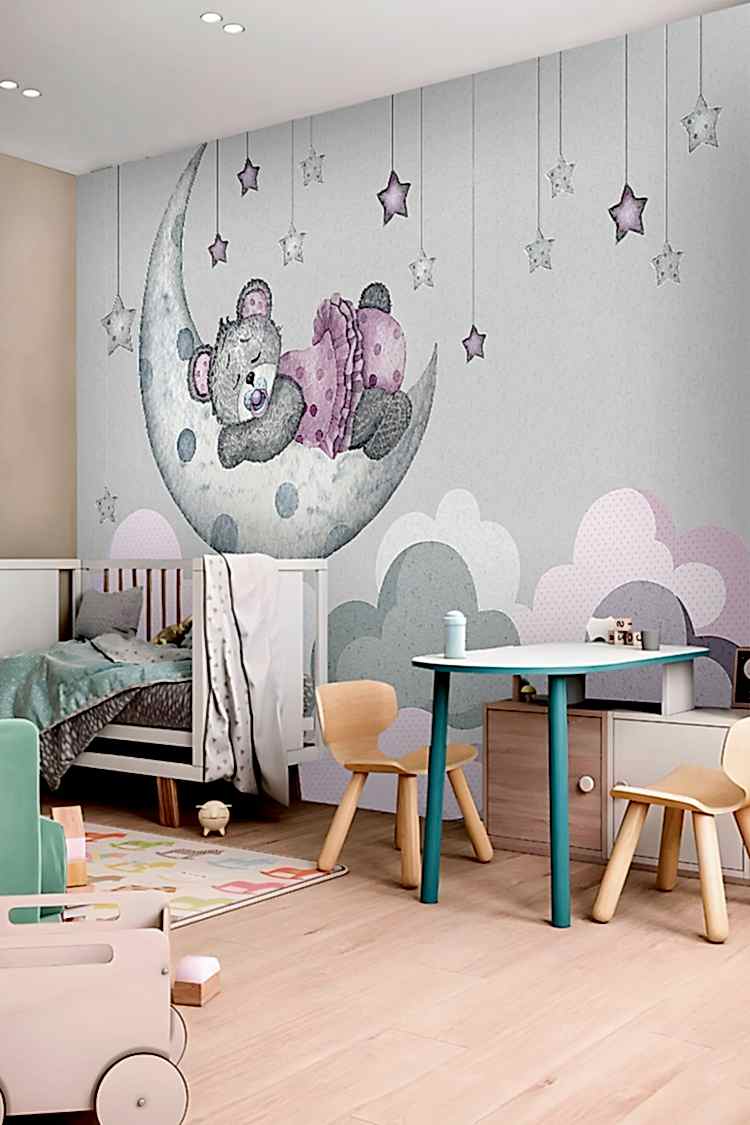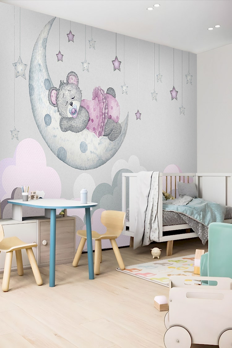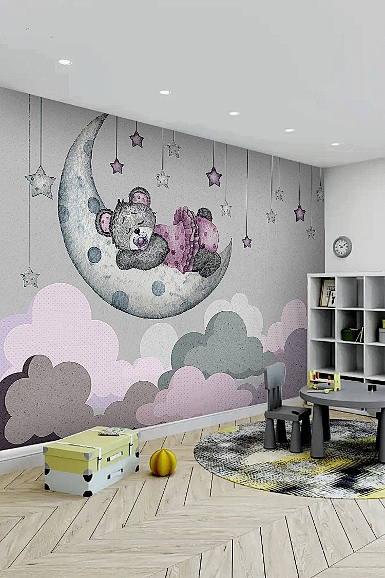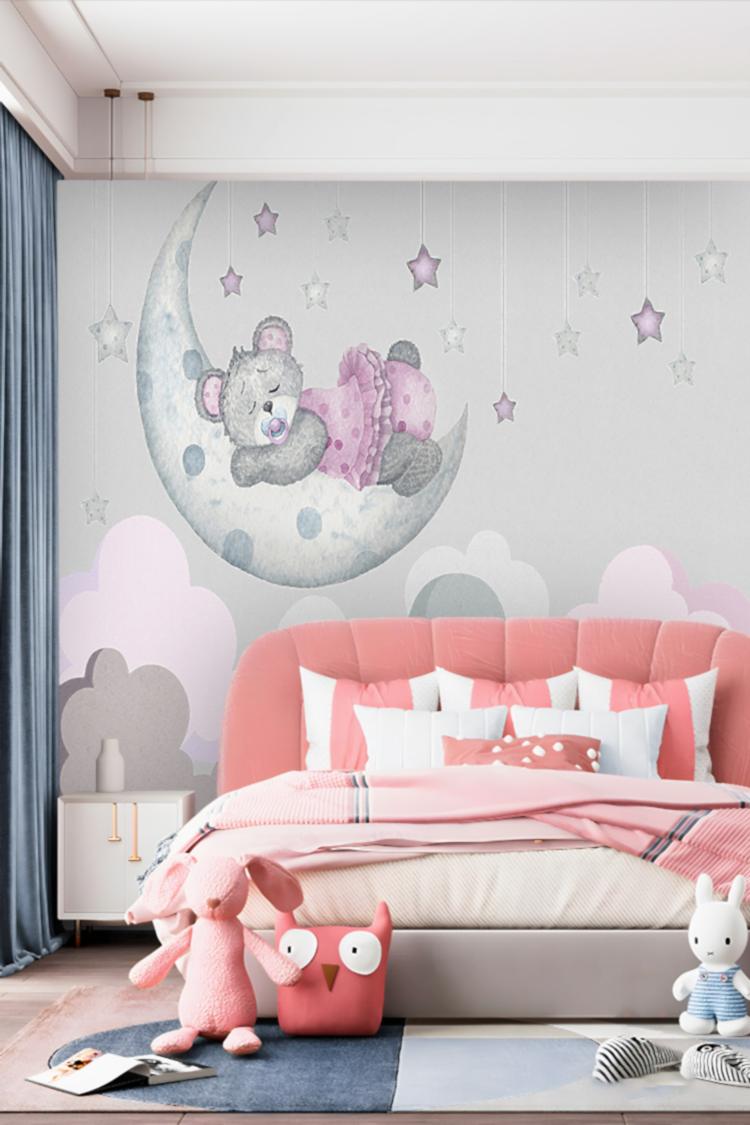 Ay ve Yıldızlarla Uyuyan Ayıcık Duvar Kağıdı