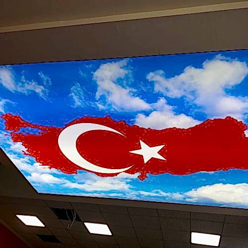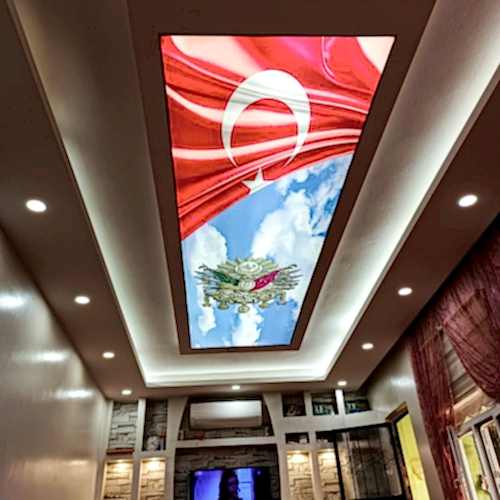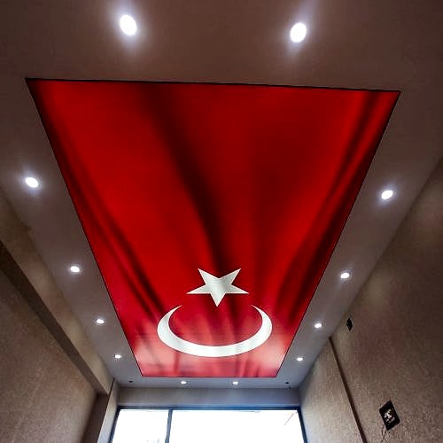 Bayrak desenli gergi tavanlar, mekanınıza estetik ve anlam katmanın harika bir yoludur. Dayanıklı, kolay bakım gerektiren ve hızlı monte edilebilen bu tavanlar, dekorasyonunuza özgün bir dokunuş katmak için ideal bir seçenektir. Bayrak motifli tavan dekorasyonu ile mekanınıza yeni bir hava katın ve ziyaretçilerinizi etkileyin.
