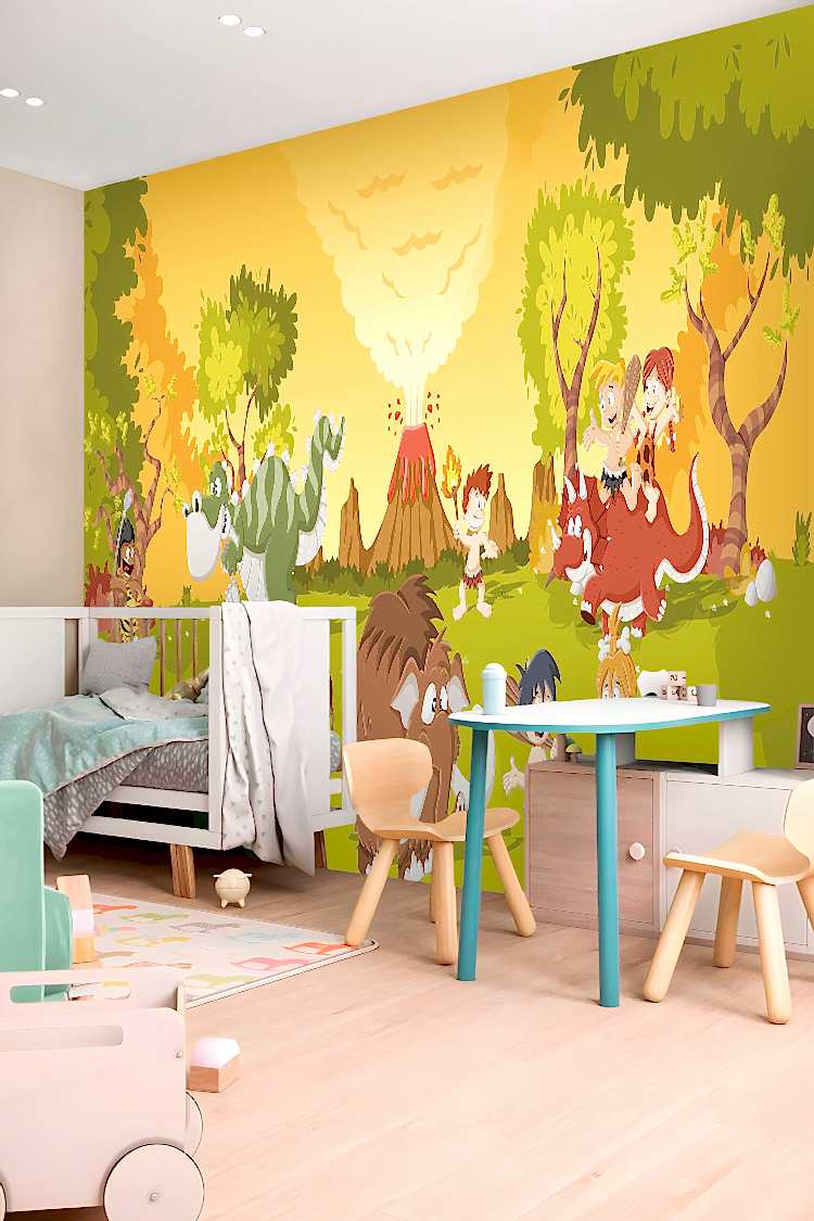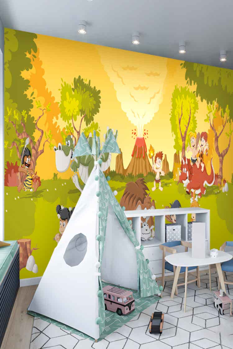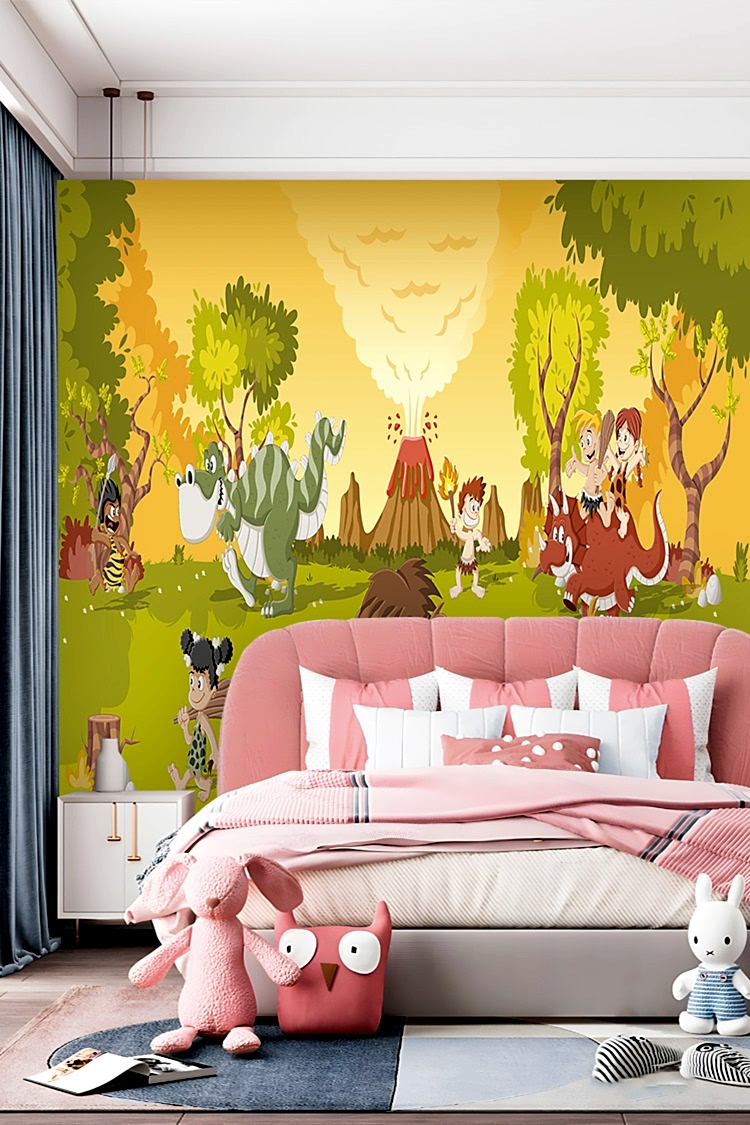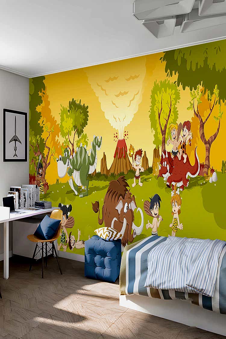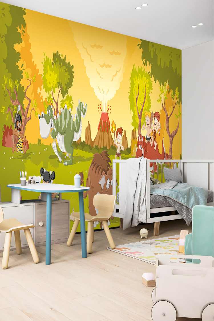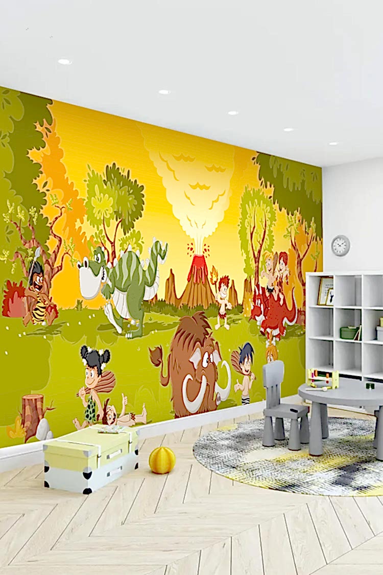 Dinozor ve Taş Devri Temalı Çocuk Odası Duvar Kağıdı
