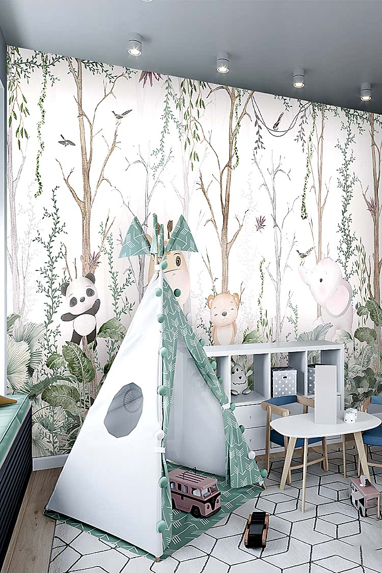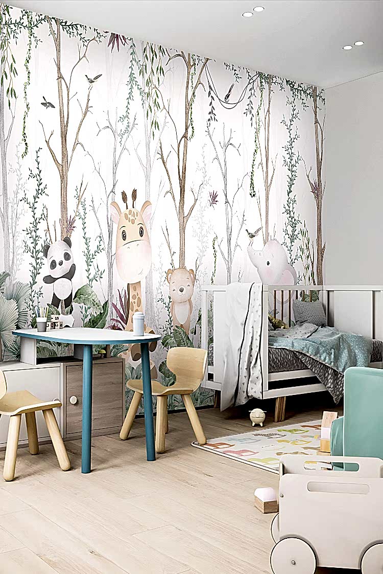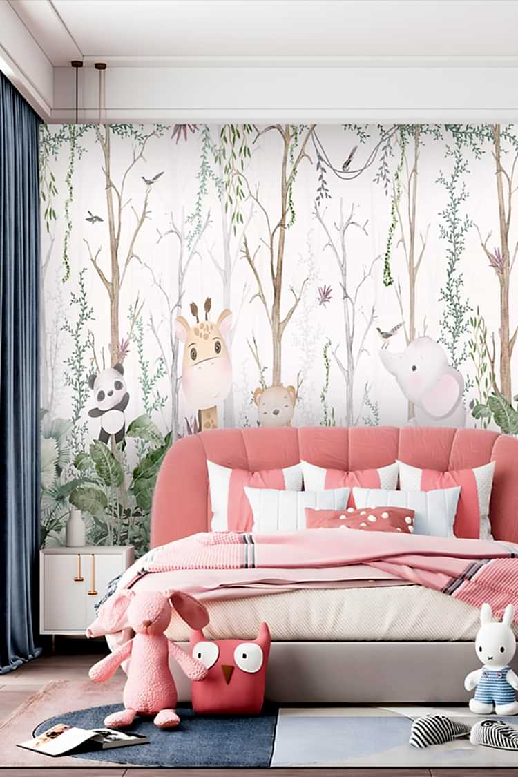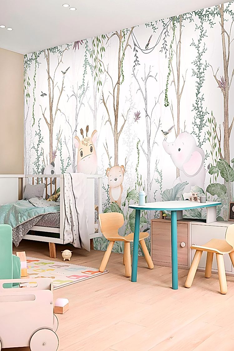 Doğa Temalı Hayvanlar ve Ağaçlar Duvar Kağıdı