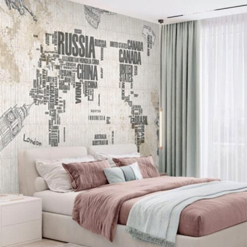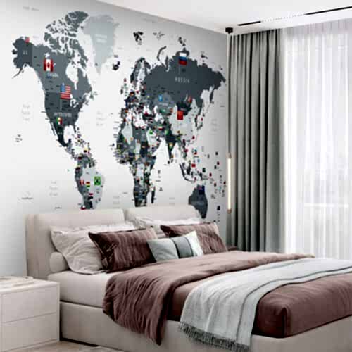 Dünya Haritası Duvar Kağıdı ile Oda Dekorasyon Fikirleri