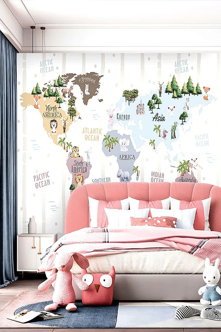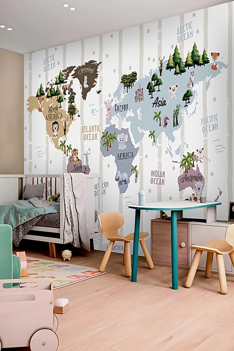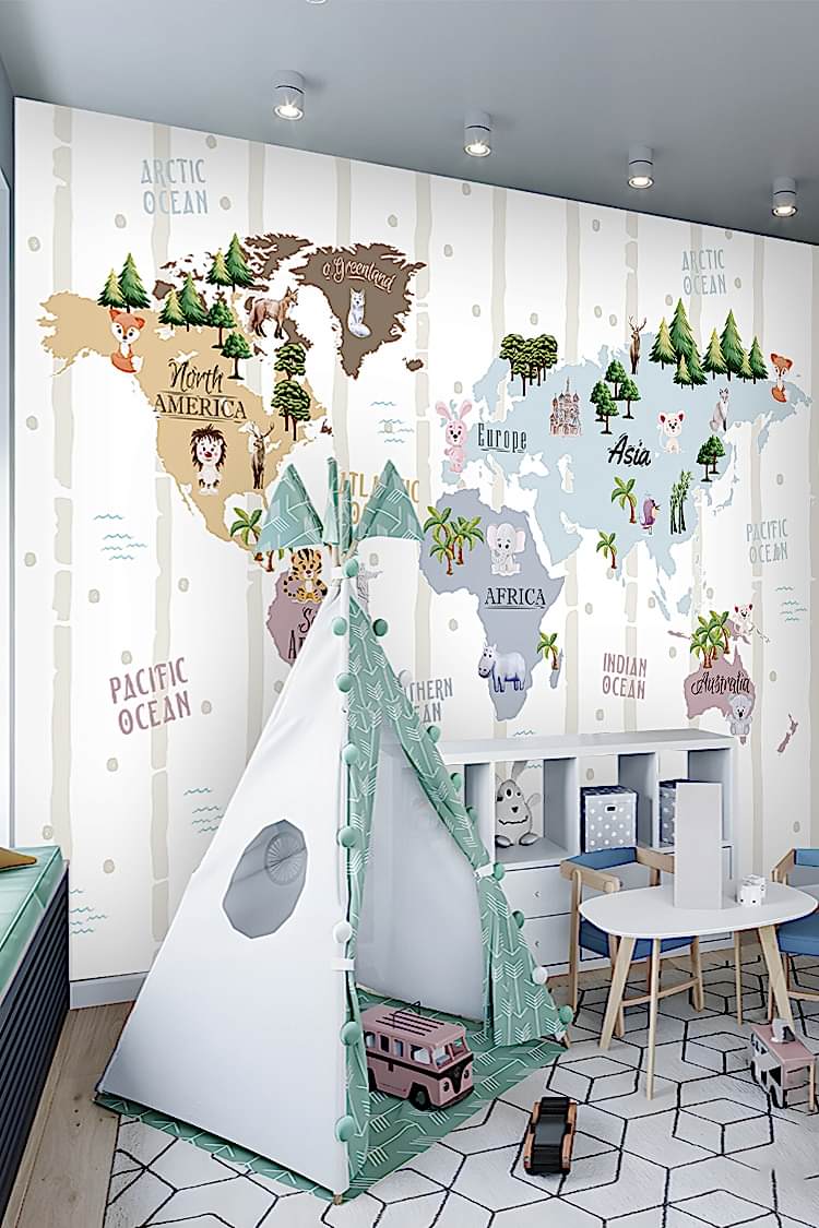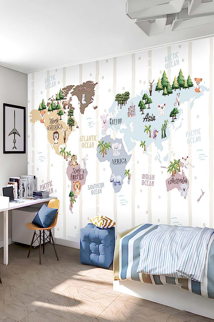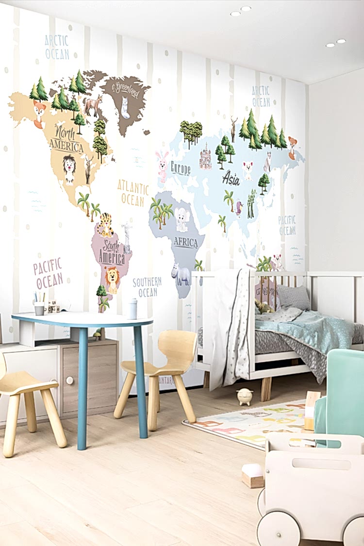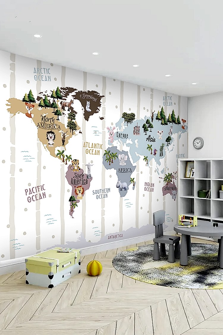 Dünya Haritası Temalı Çocuk Duvar Kağıdı