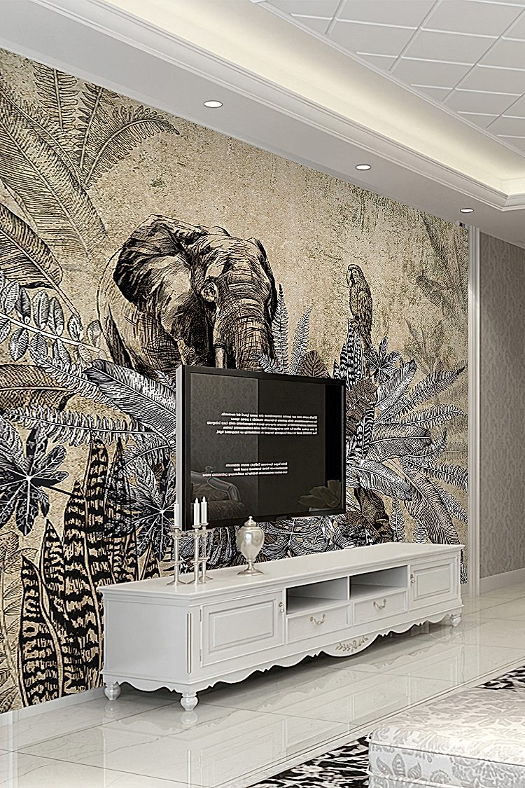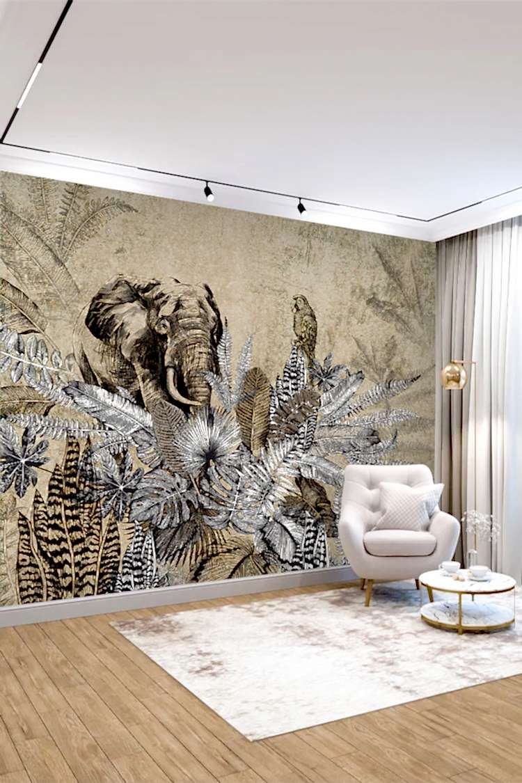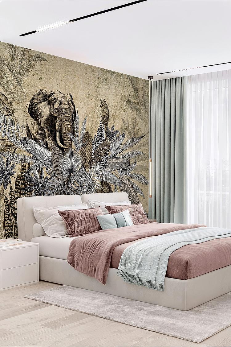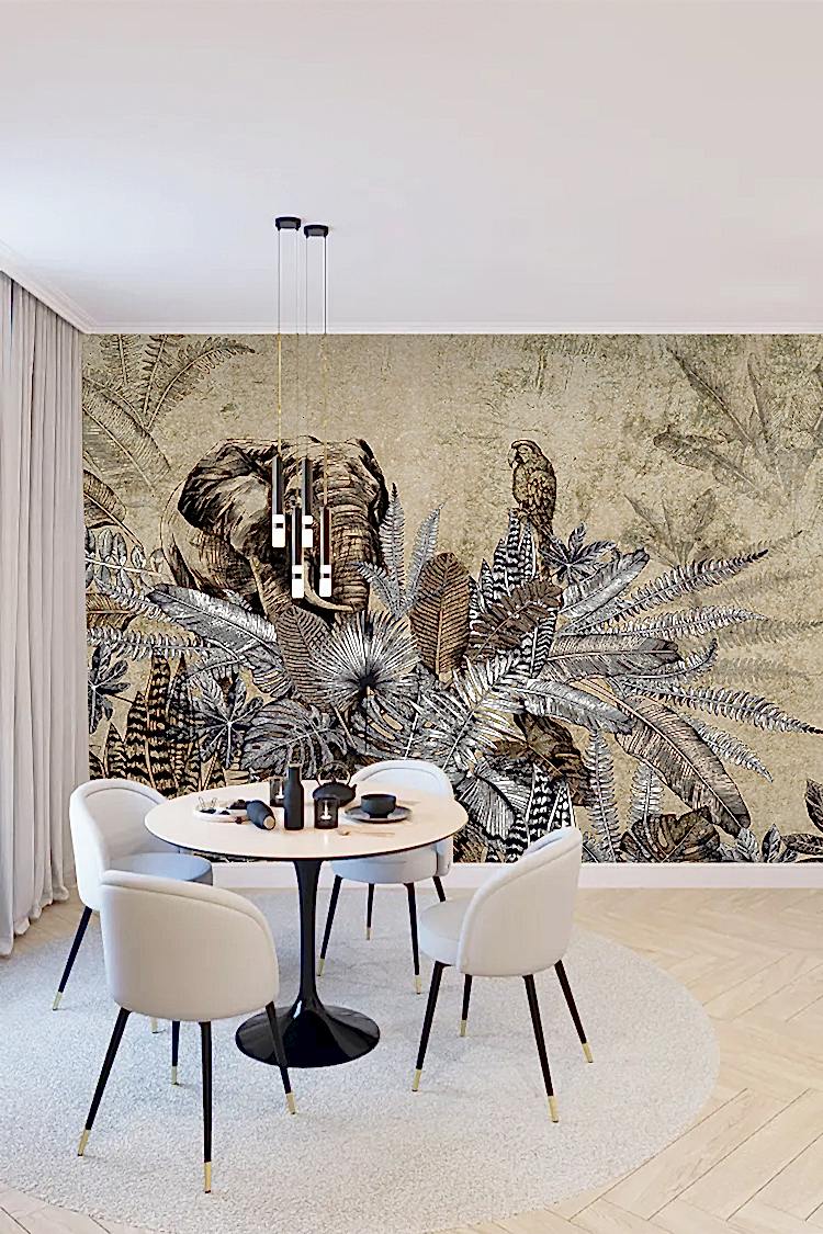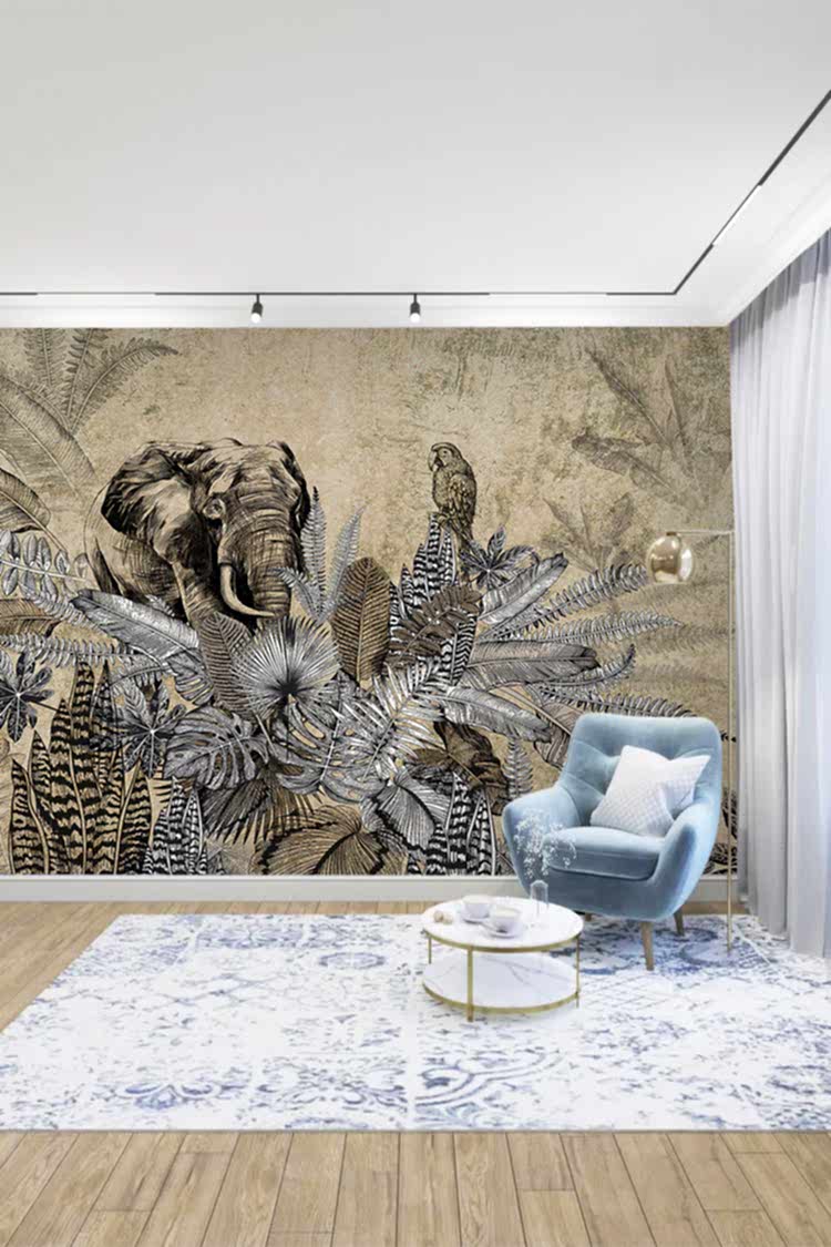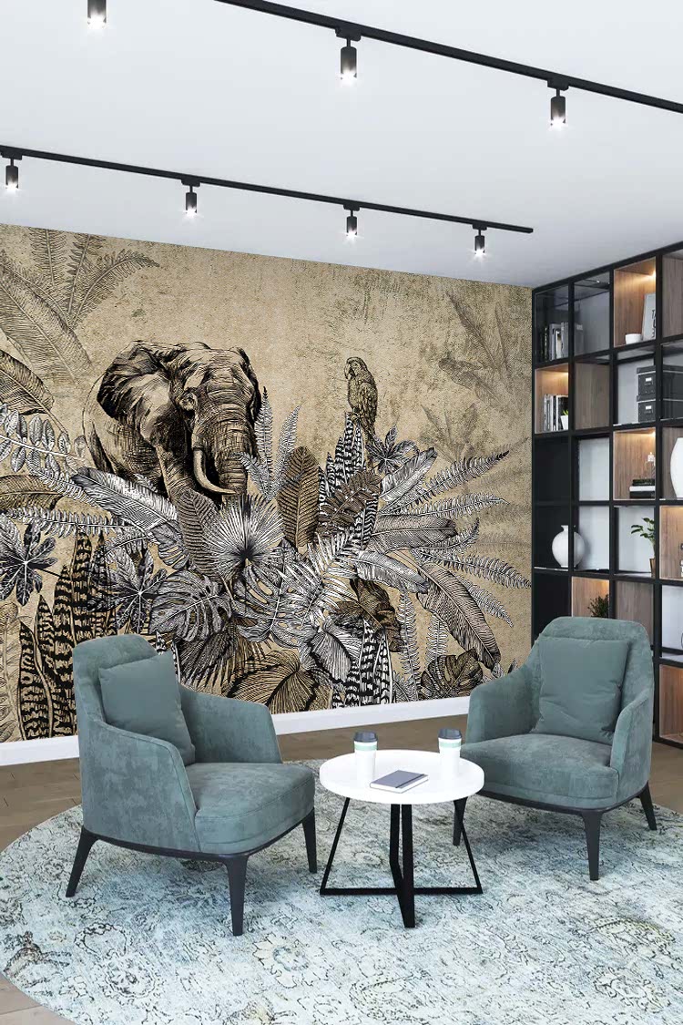 Egzotik Fil ve Doğa Desenli Duvar Kağıdı