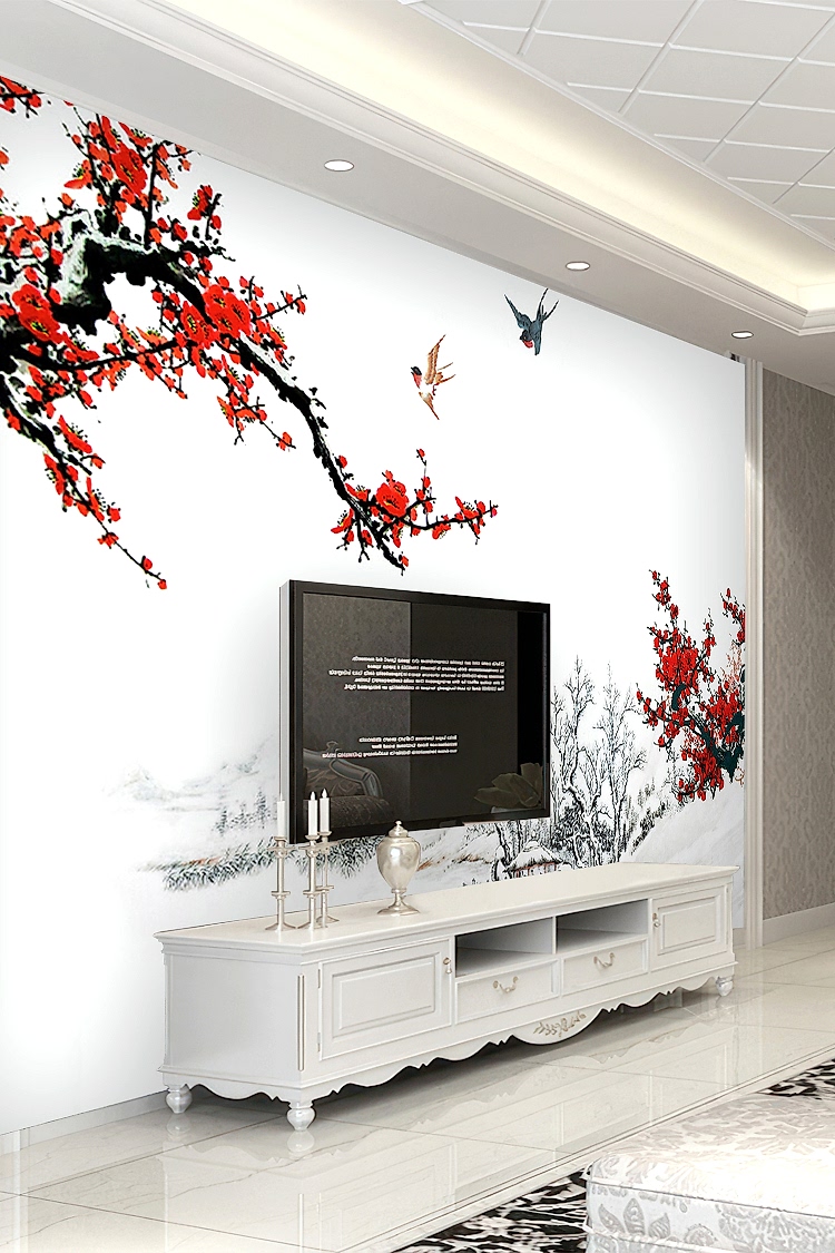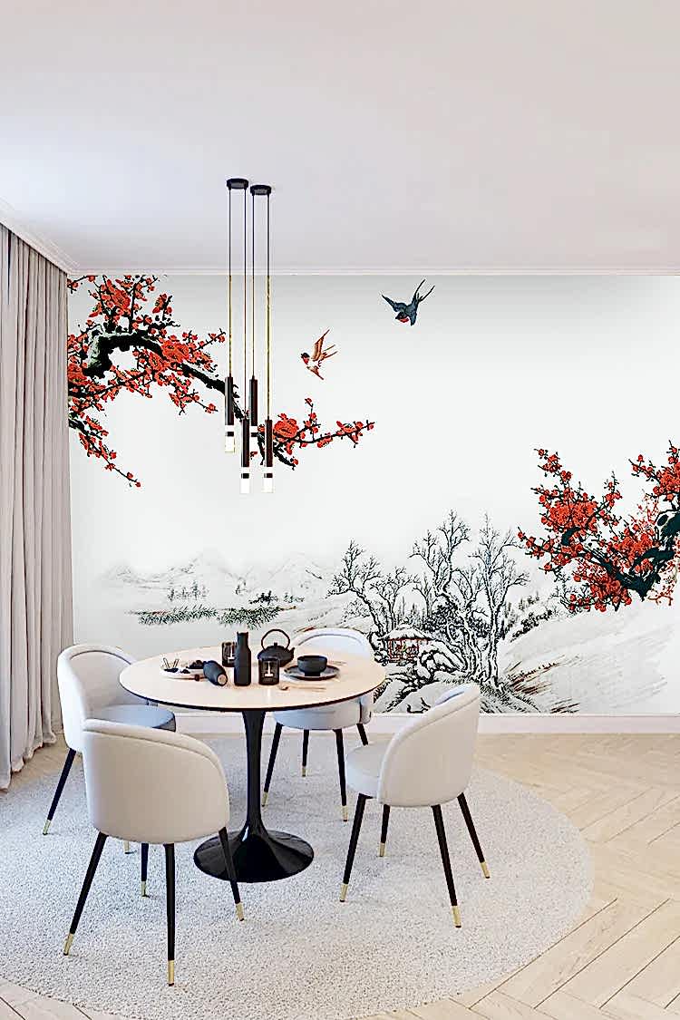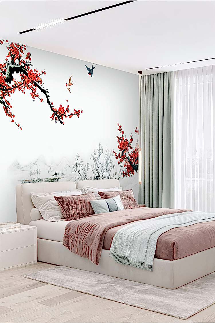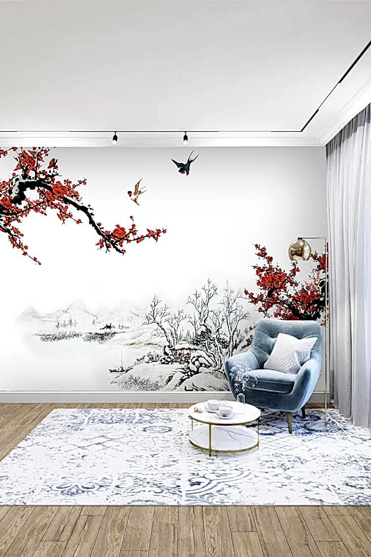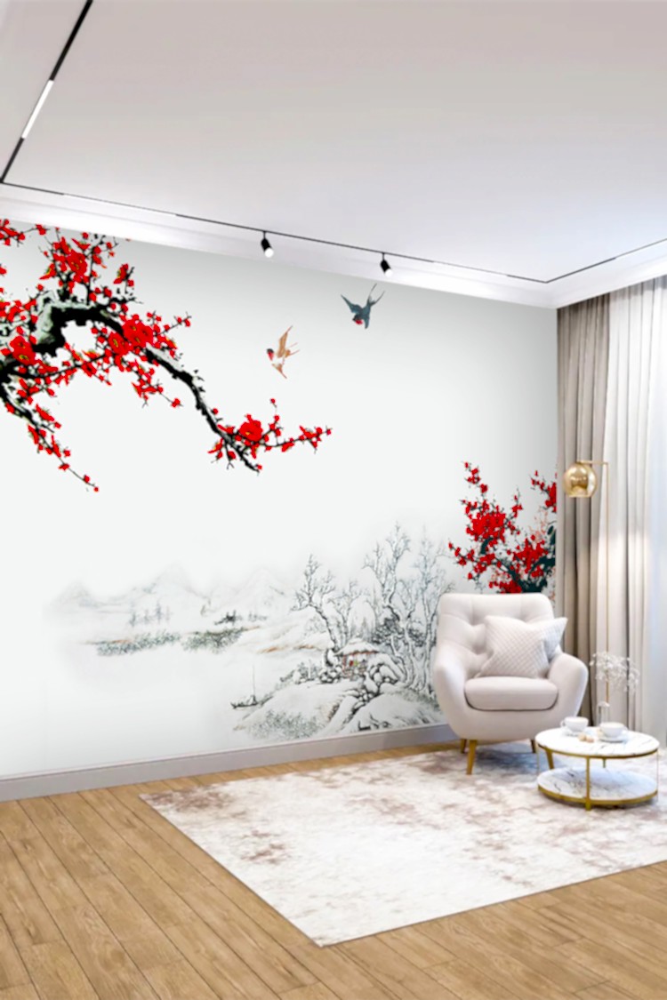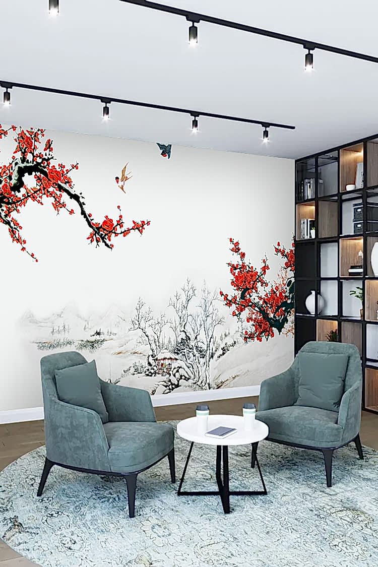 Kiraz Çiçekli Kış Manzaralı Duvar Kağıdı