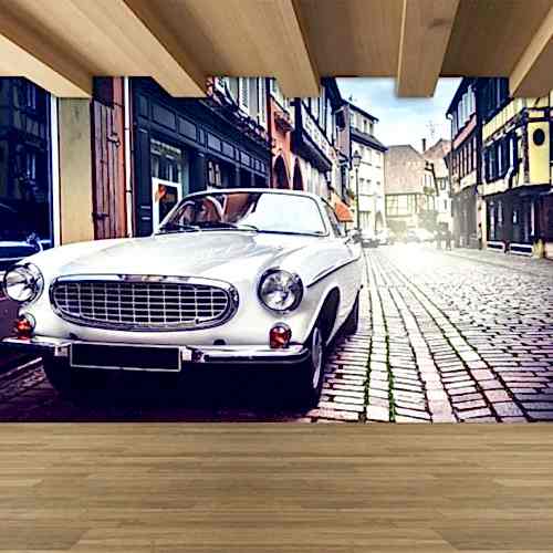Kırmızı Off-Road Araba ve Duvar Çatlak Deseni ile Dinamik Duvar Kağıdı