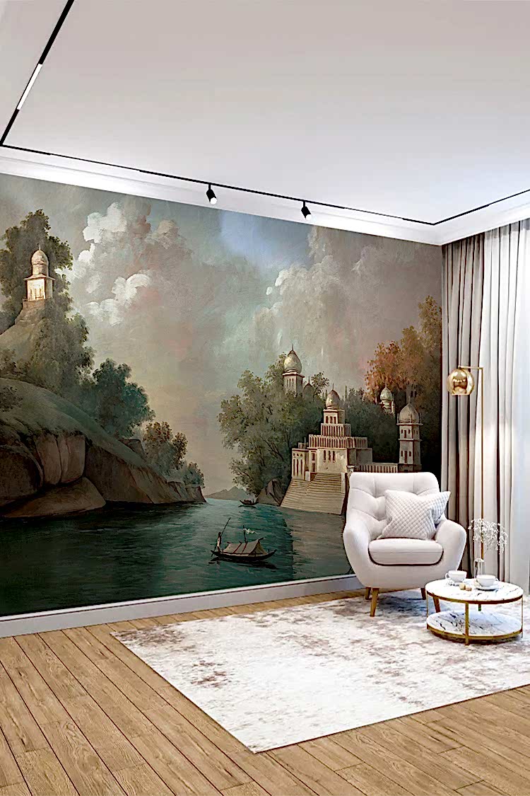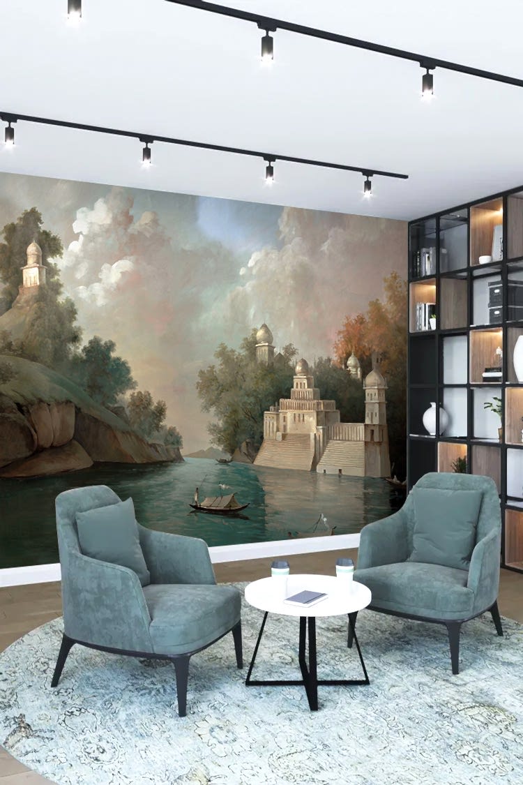 Manzara ve Mimari Detaylı Şık Duvar Kağıdı