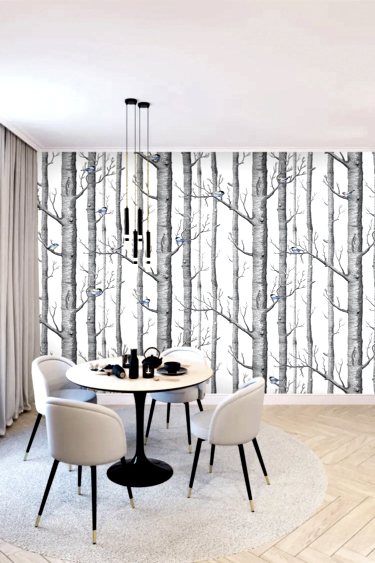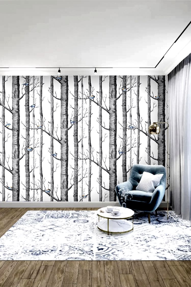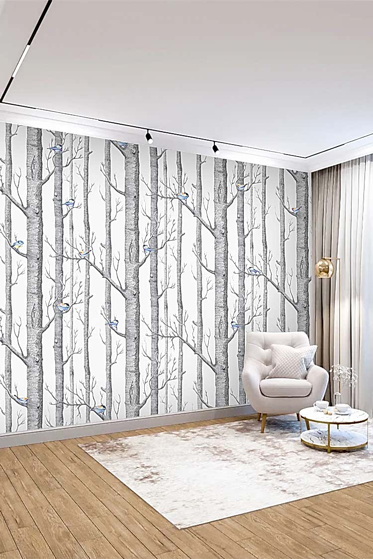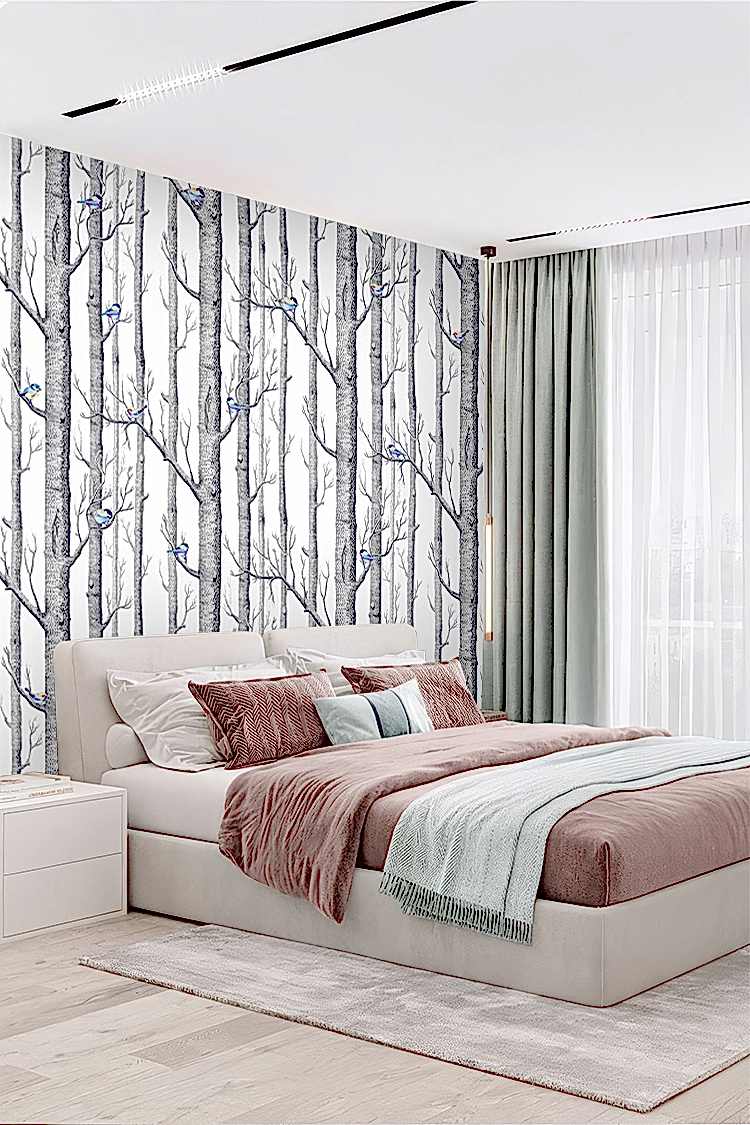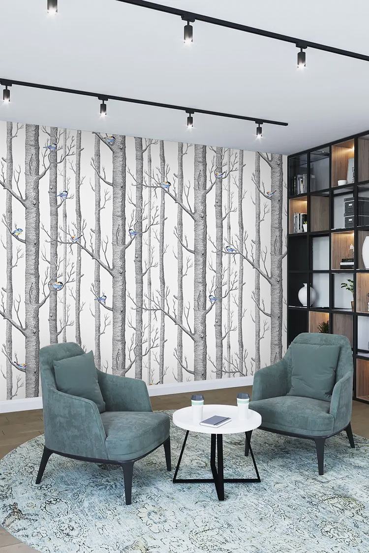 Minimal Kuşlu Orman Duvar Kağıdı