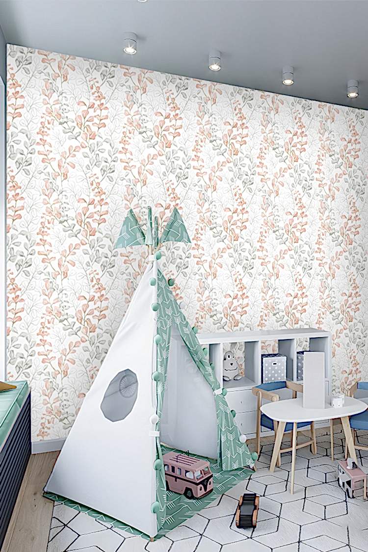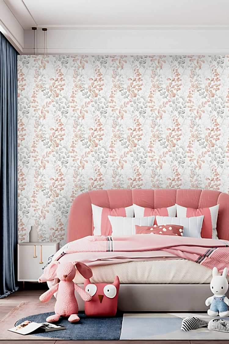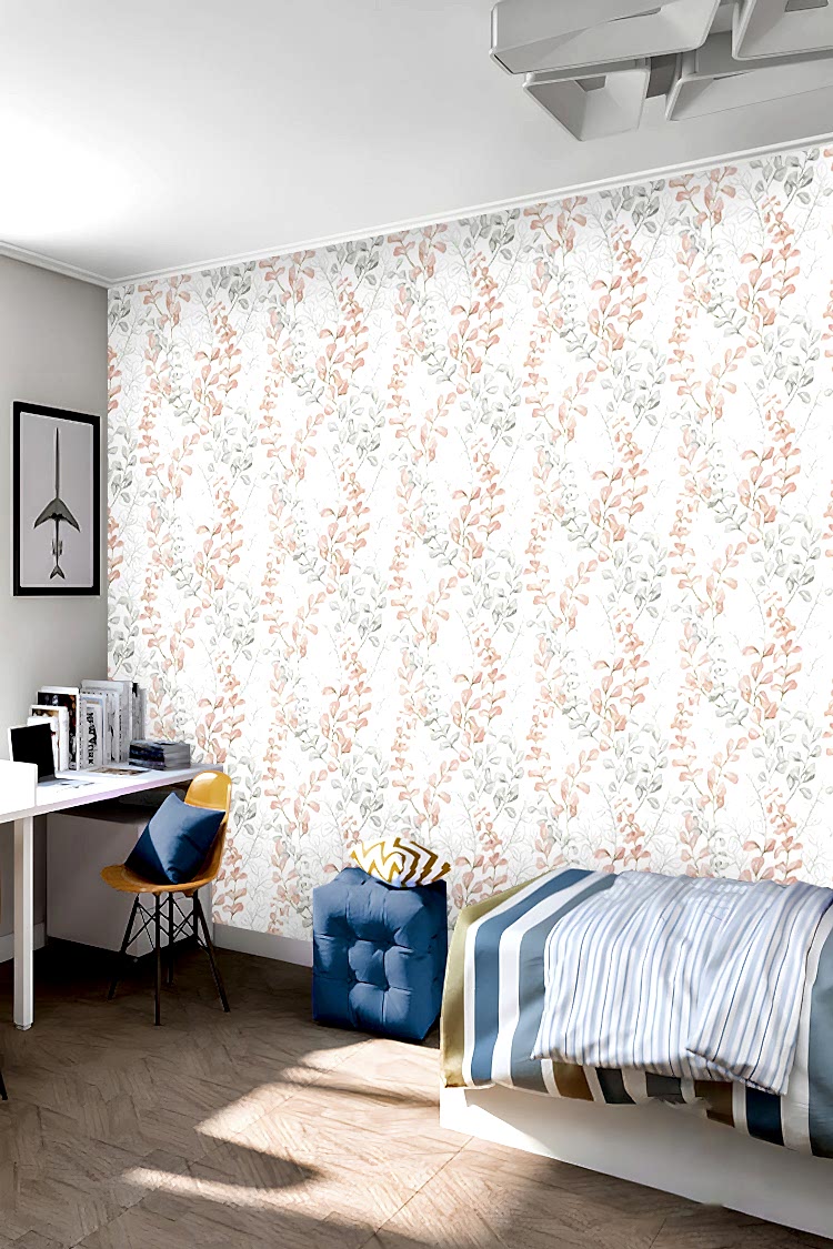 Pastel Yaprak Desenli Botanik Duvar Kağıdı