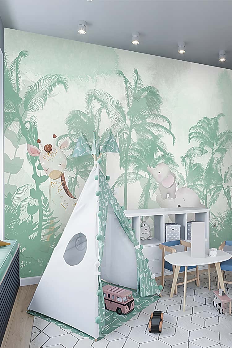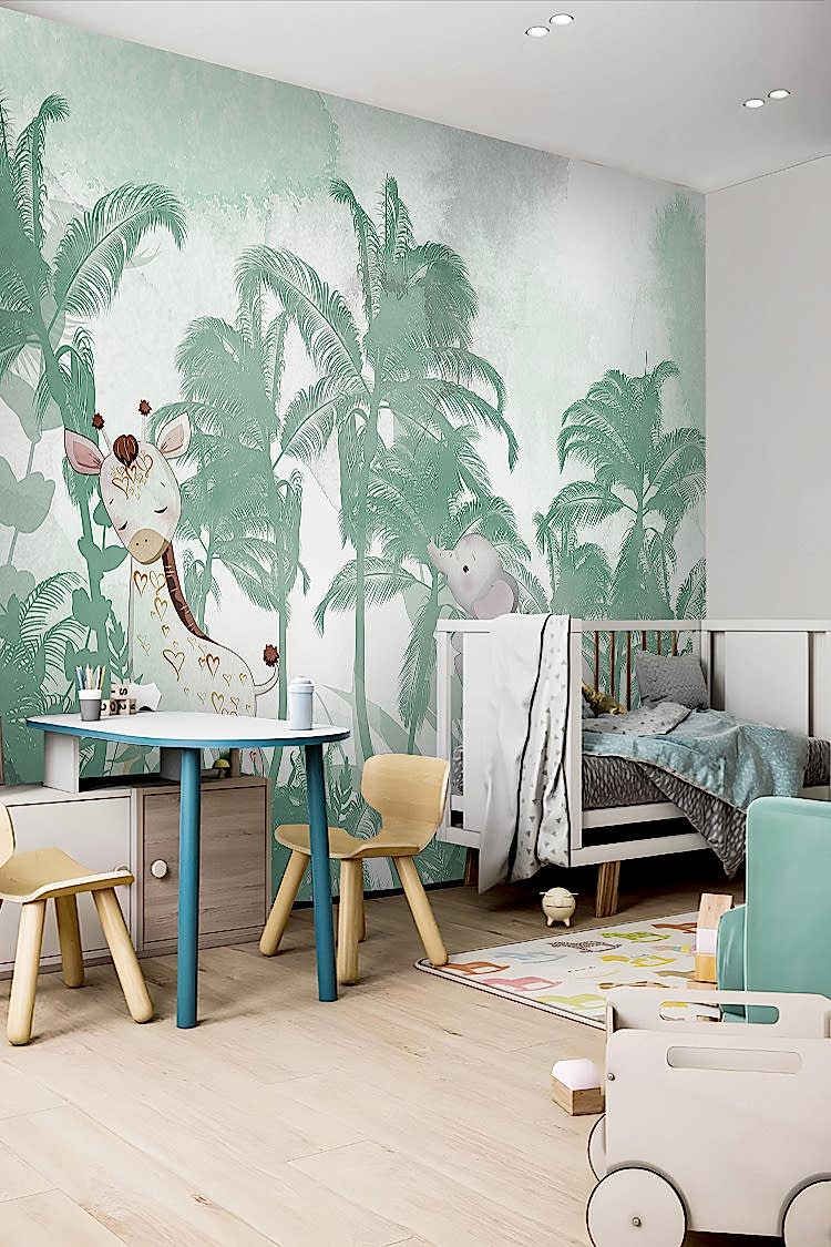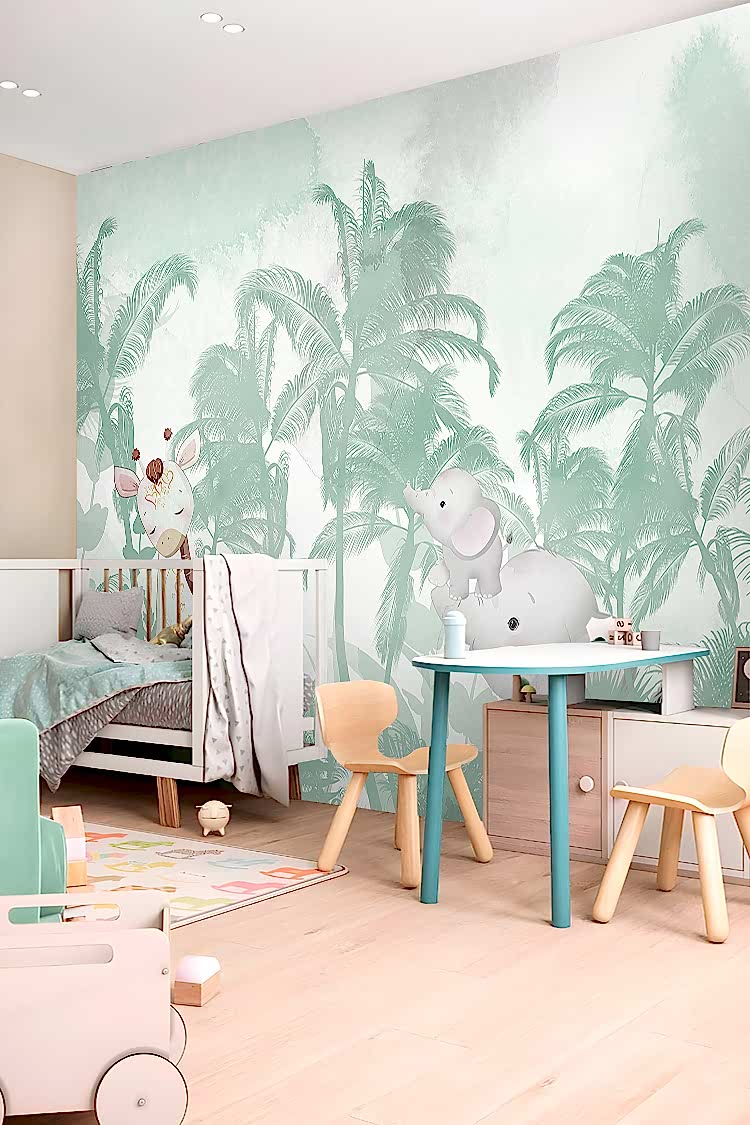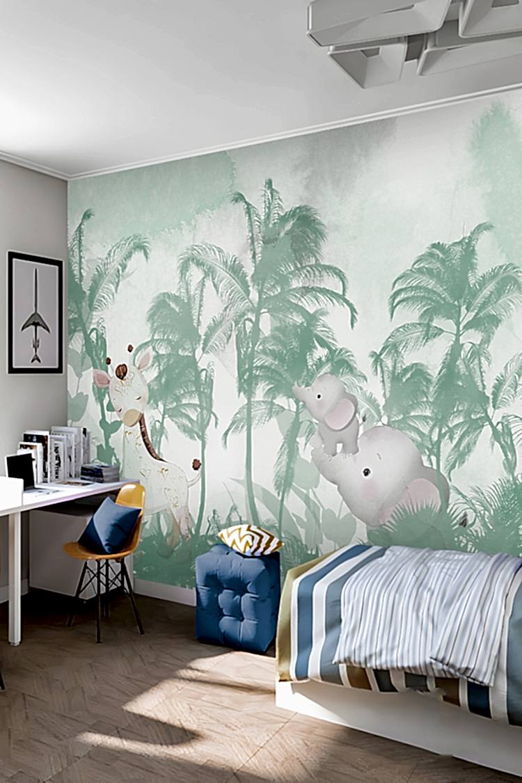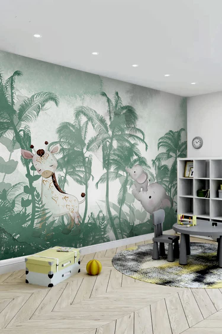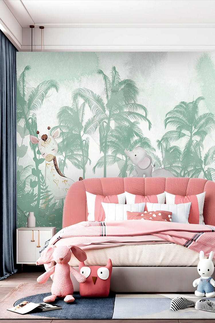 Pastel Zürafa ve Fil Duvar Kağıdı