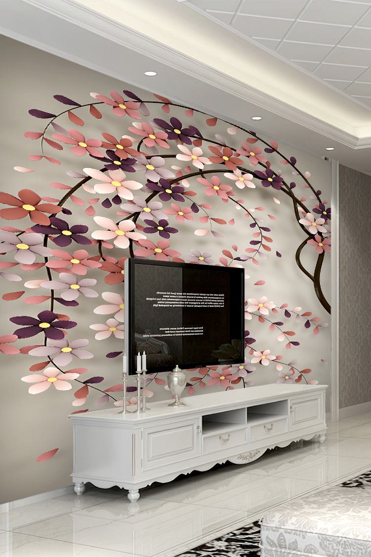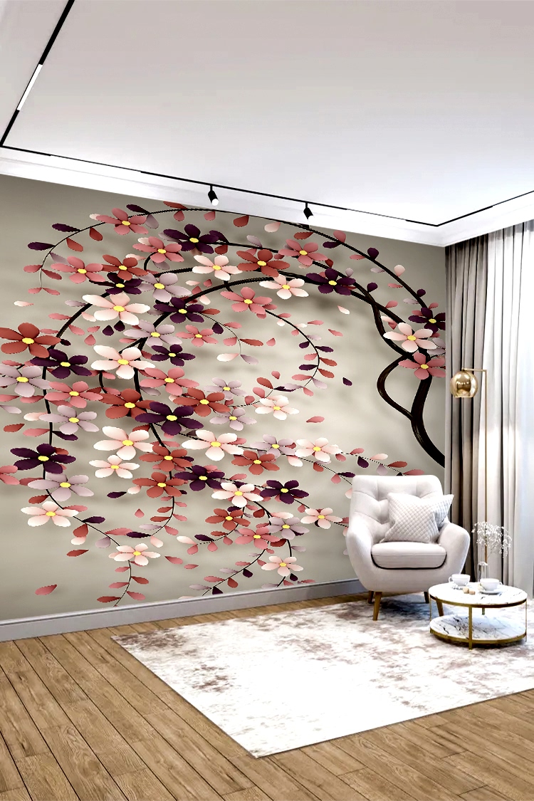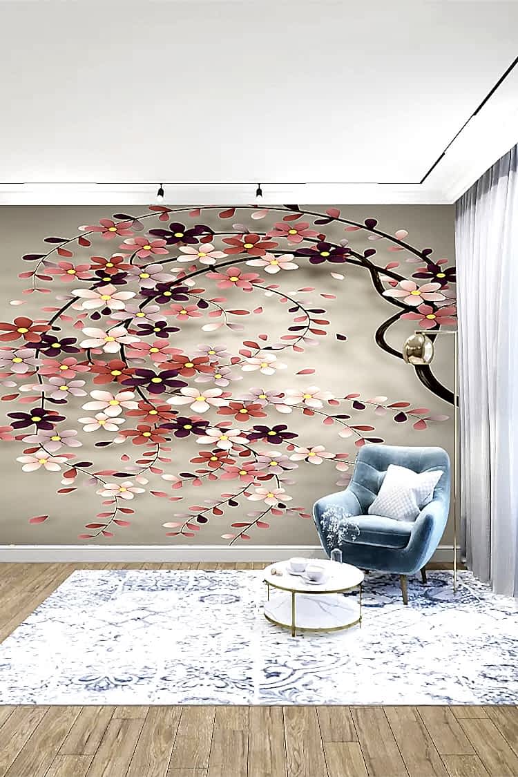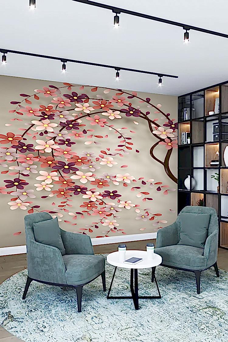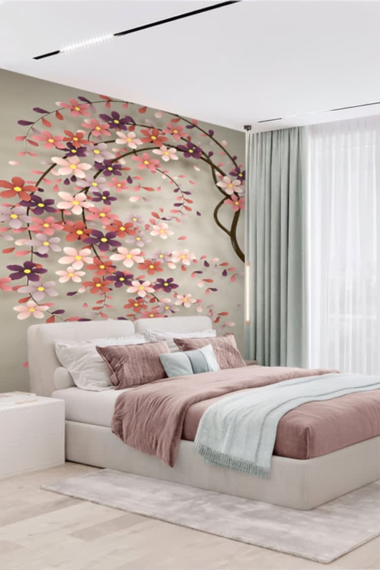Pembe ve Mor Çiçek Deseni ile Zarif Duvar Kağıdı