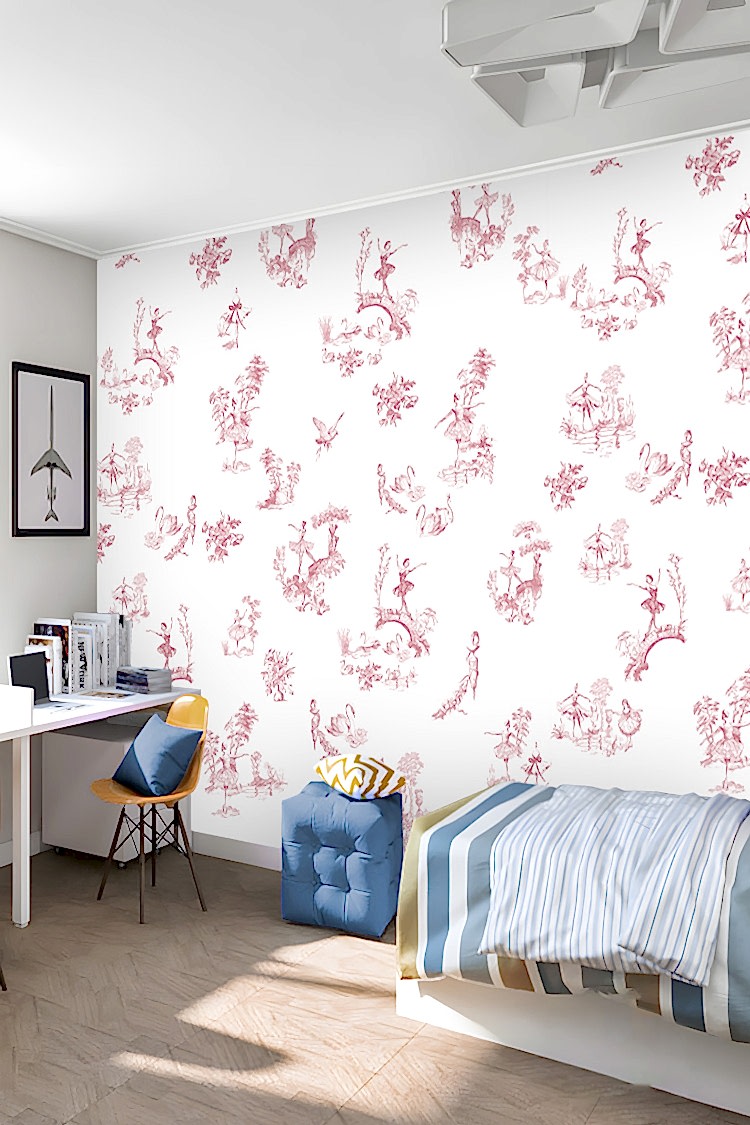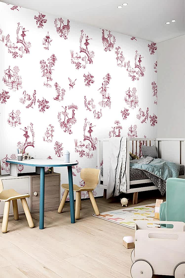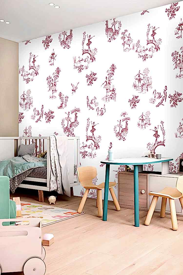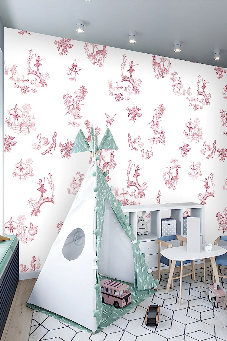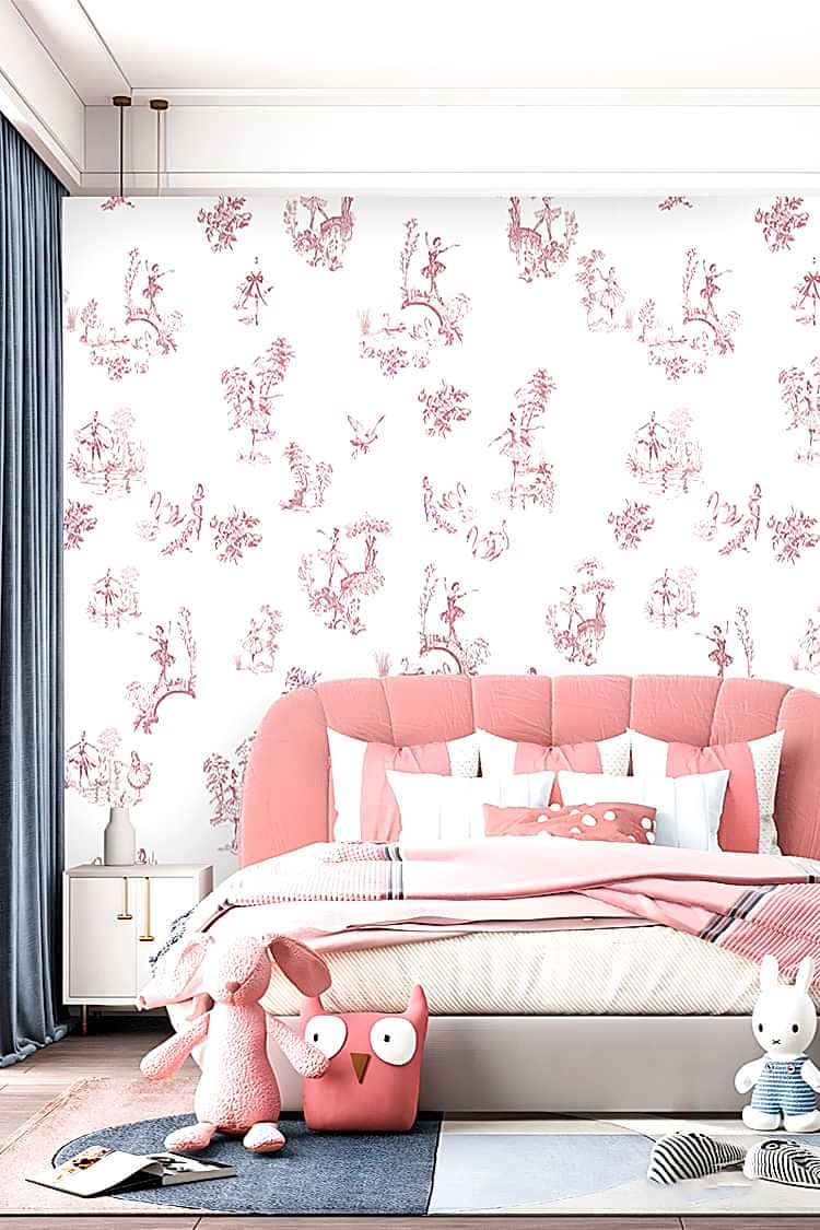 Pembe Vintage Çizimli Dokulu Duvar Kağıdı