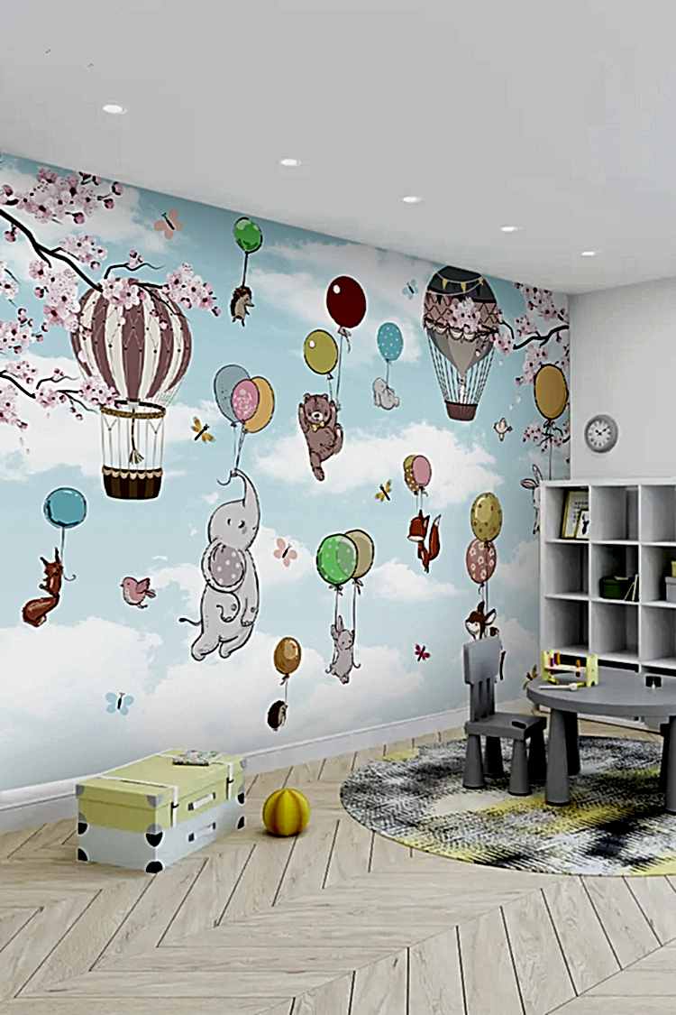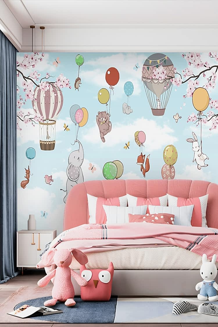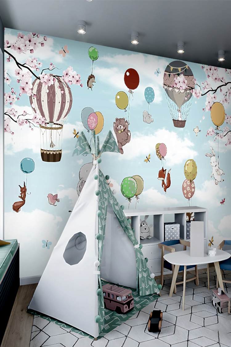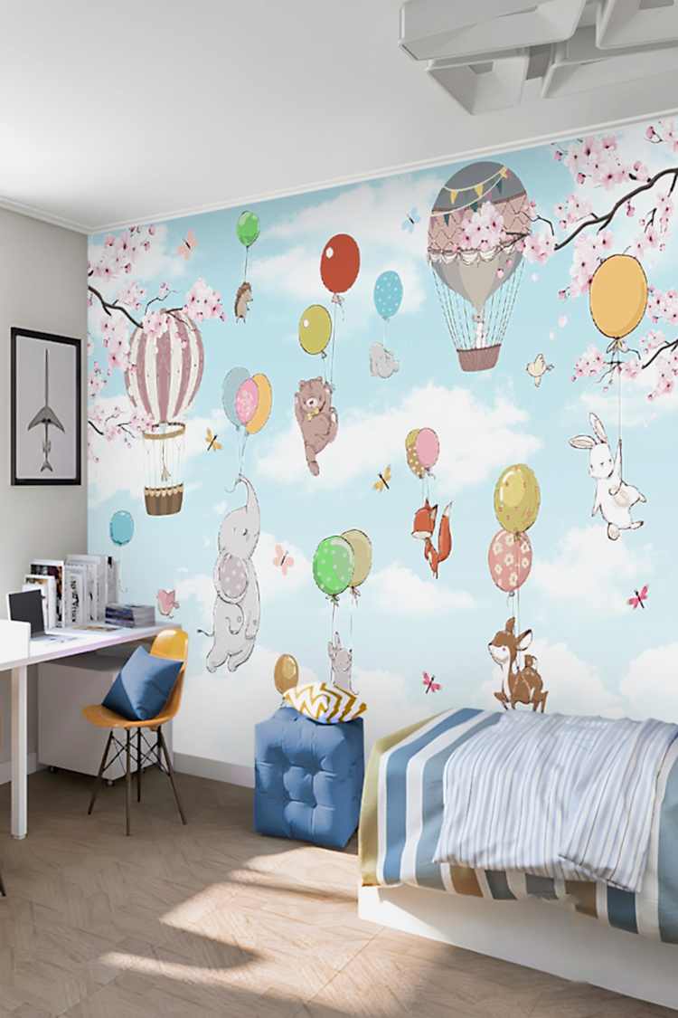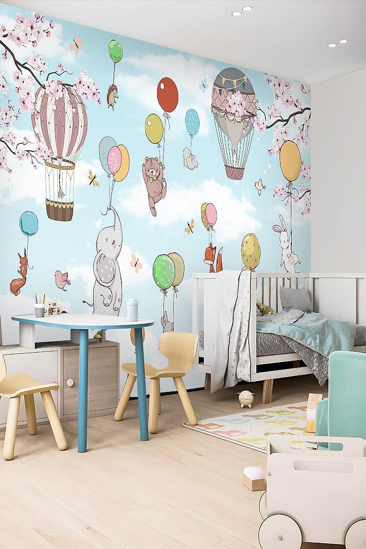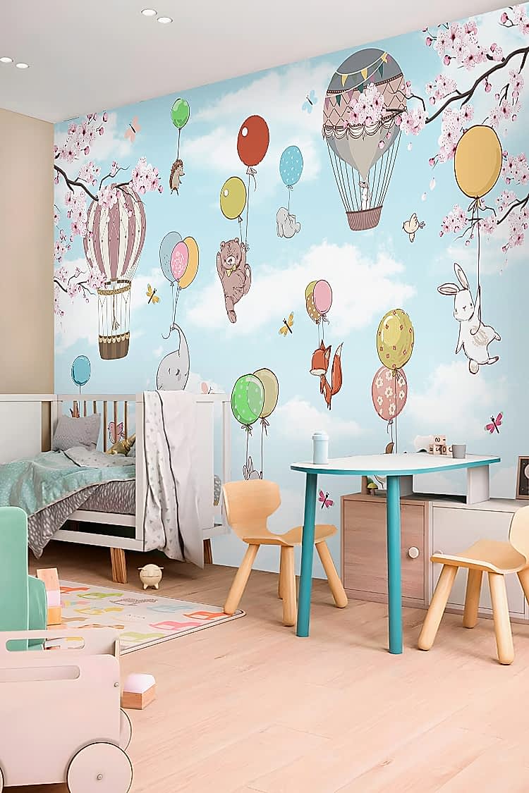Renkli Balonlar ve Hayvan Figürlü Duvar Kağıdı