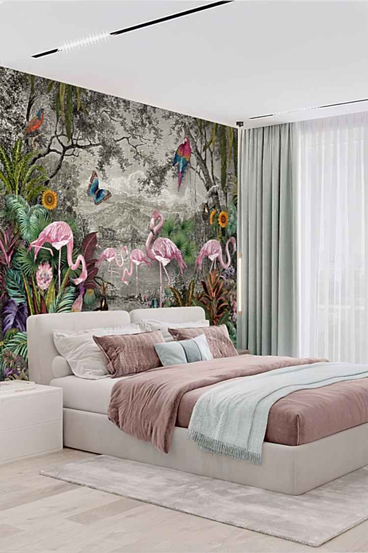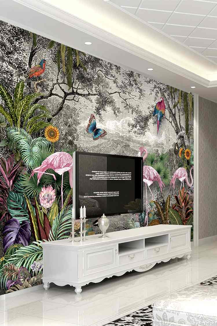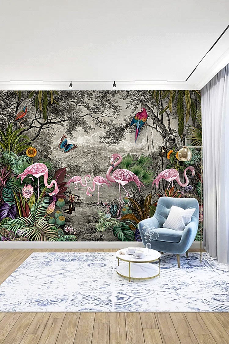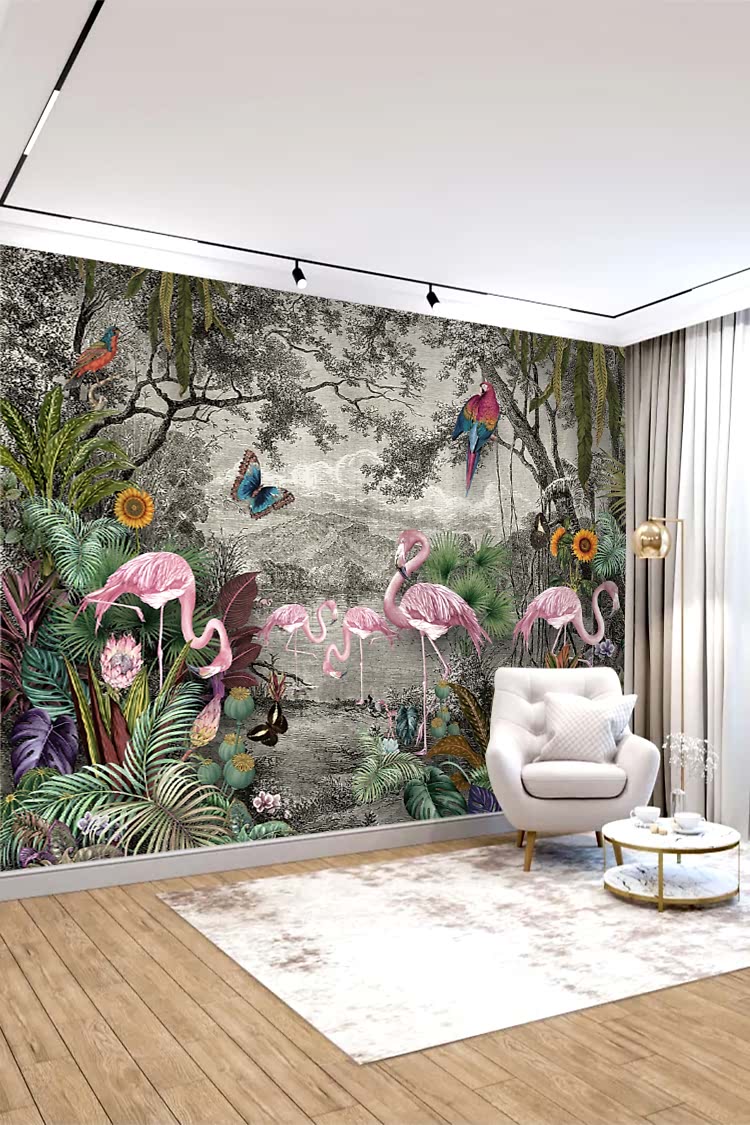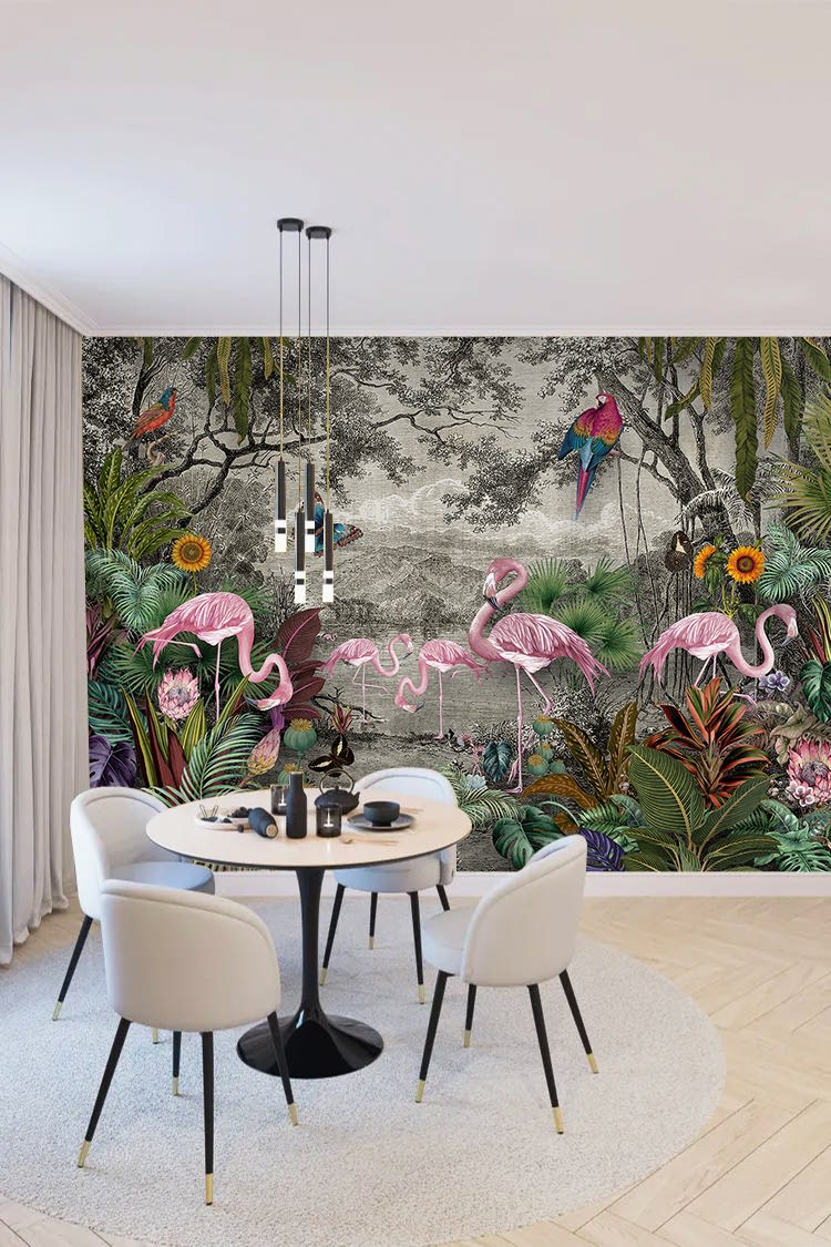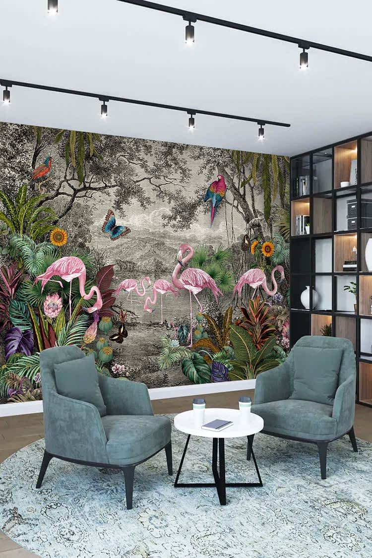 Renkli Flamingolar ve Doğal Manzara Duvar Kağıdı
