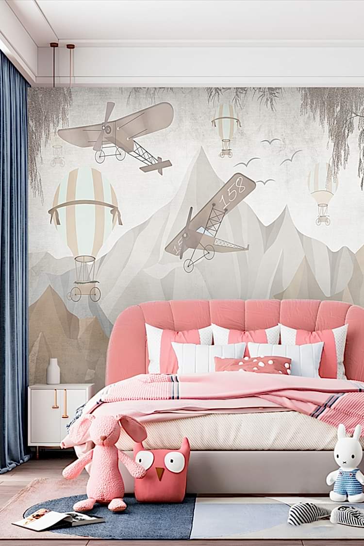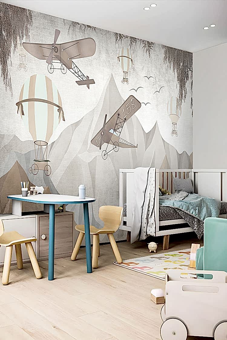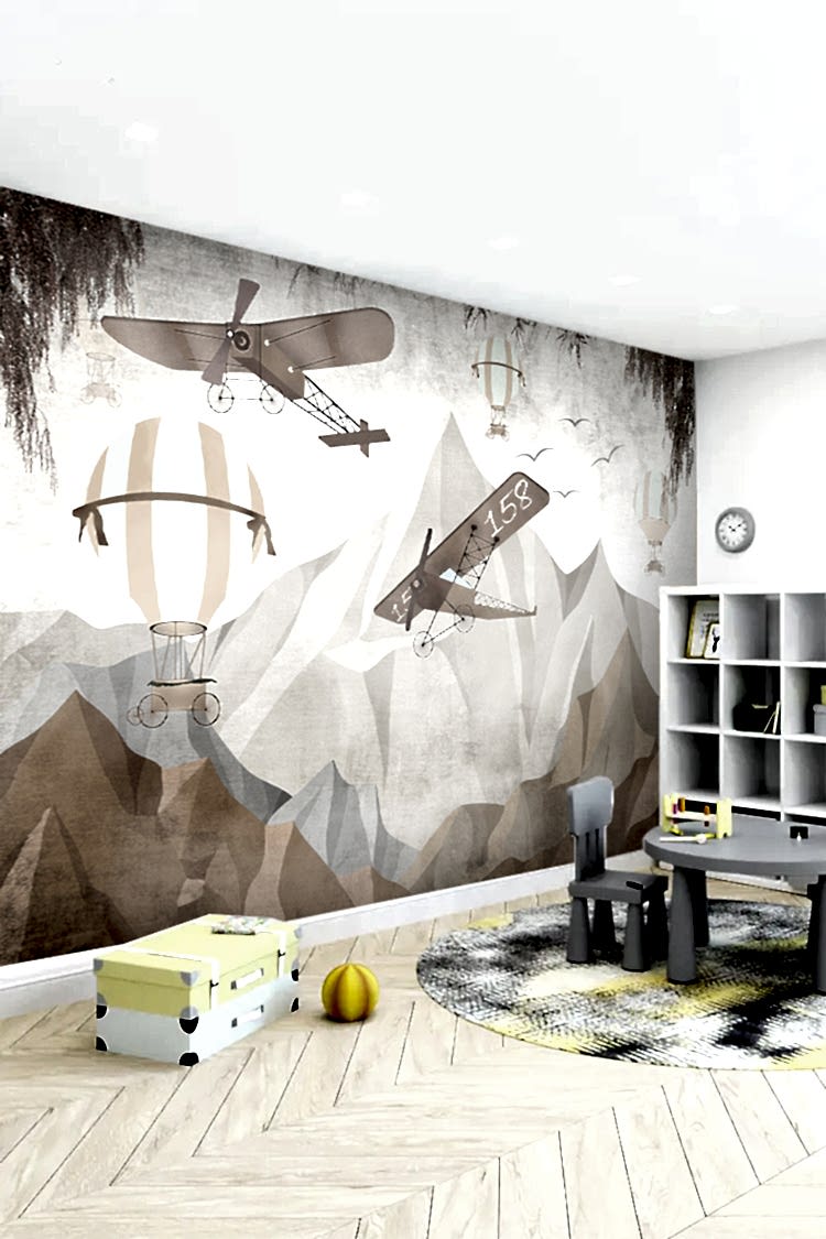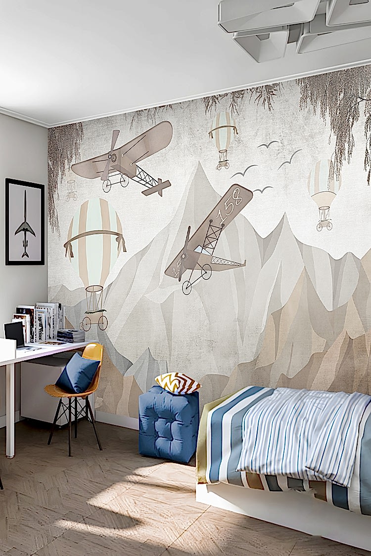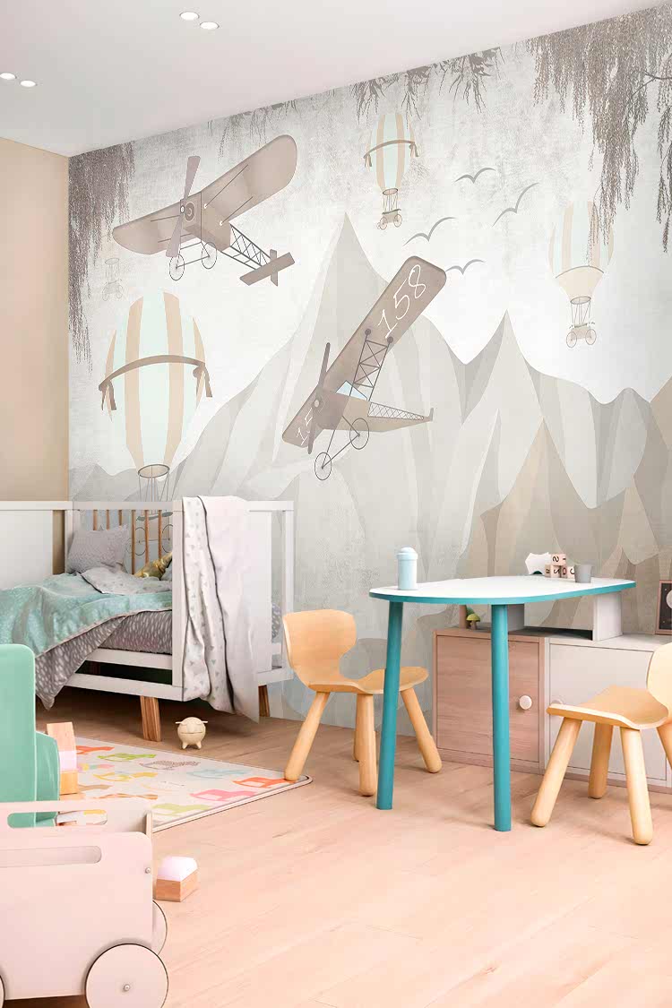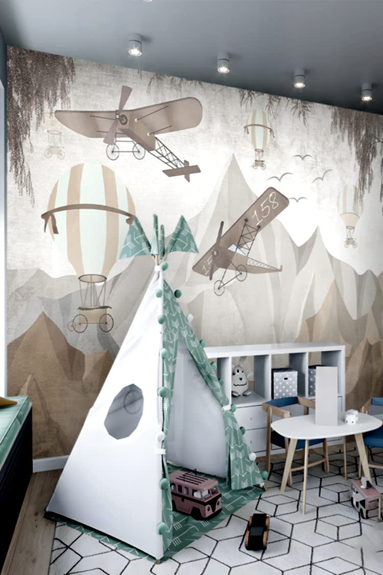 Retro Uçan Balonlar ve Uçak Duvar Kağıdı