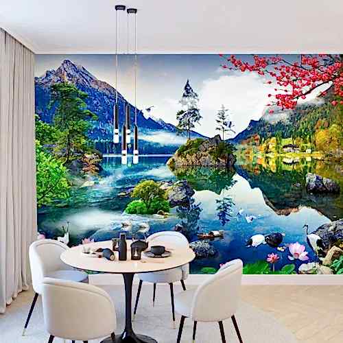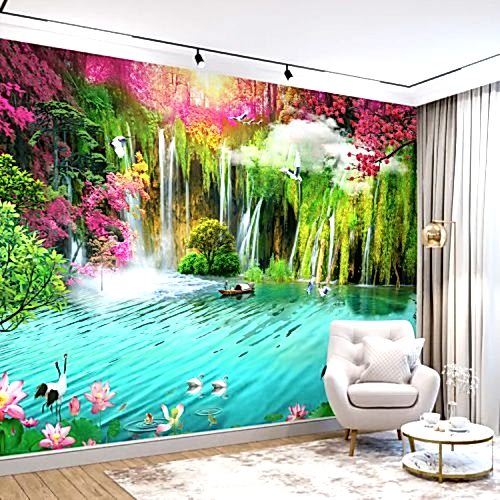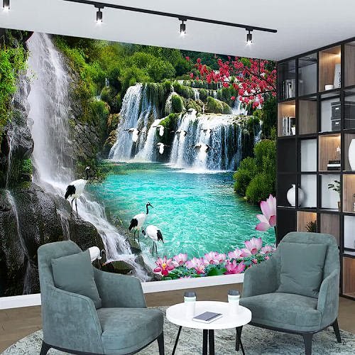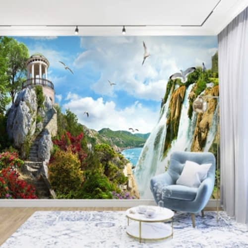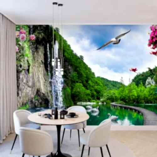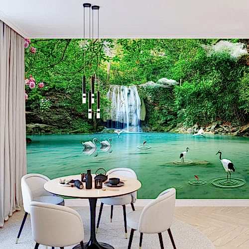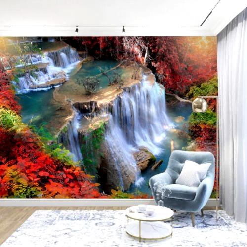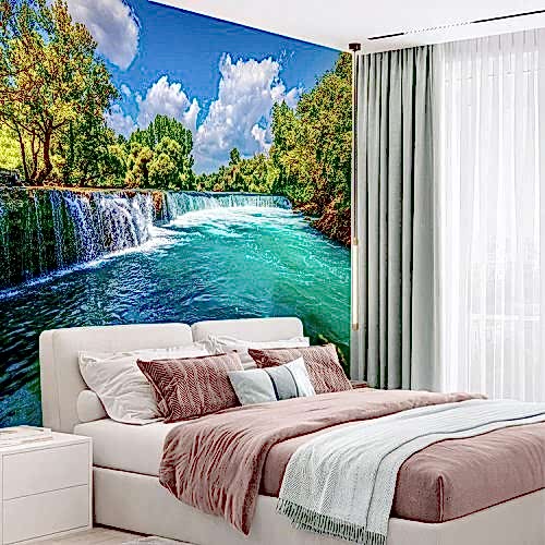 Şelale Desenli Duvar Kağıtları ile Dekorasyon Fikirleri