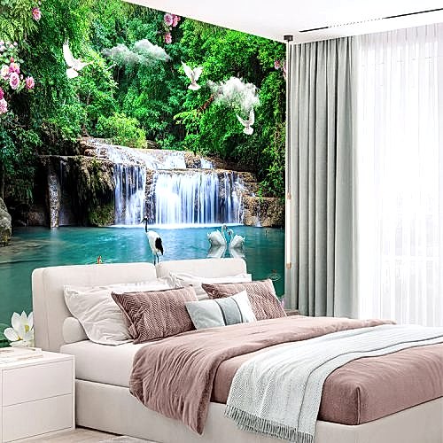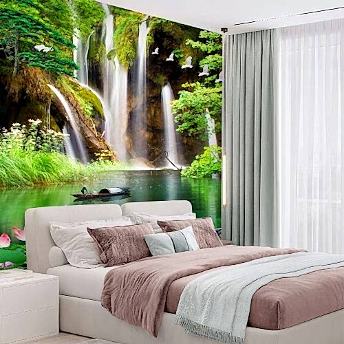 Yatak odası, dinlenme ve uyku için en önemli alanlardan biridir. Şelale desenli duvar kağıtları, yatak odasında huzur ve dinginlik hissi uyandırır. Yatak başlığı arkasındaki duvara uygulandığında, odanıza derinlik ve sakinlik katar. Bu deseni, yumuşak renk tonları ve sade dekoratif unsurlarla tamamlayarak rahatlatıcı bir yatak odası atmosferi oluşturabilirsiniz.