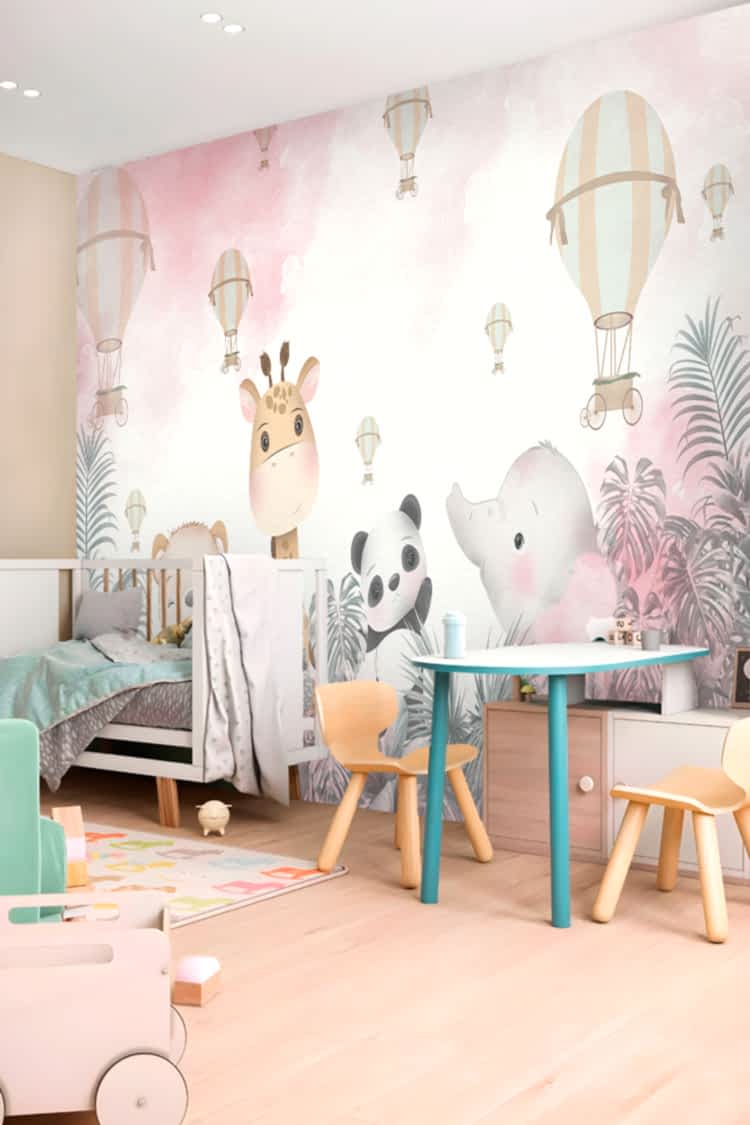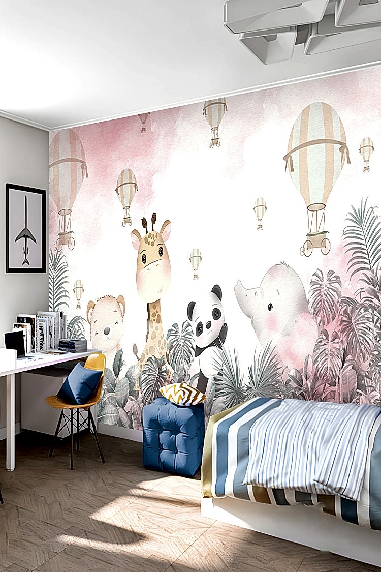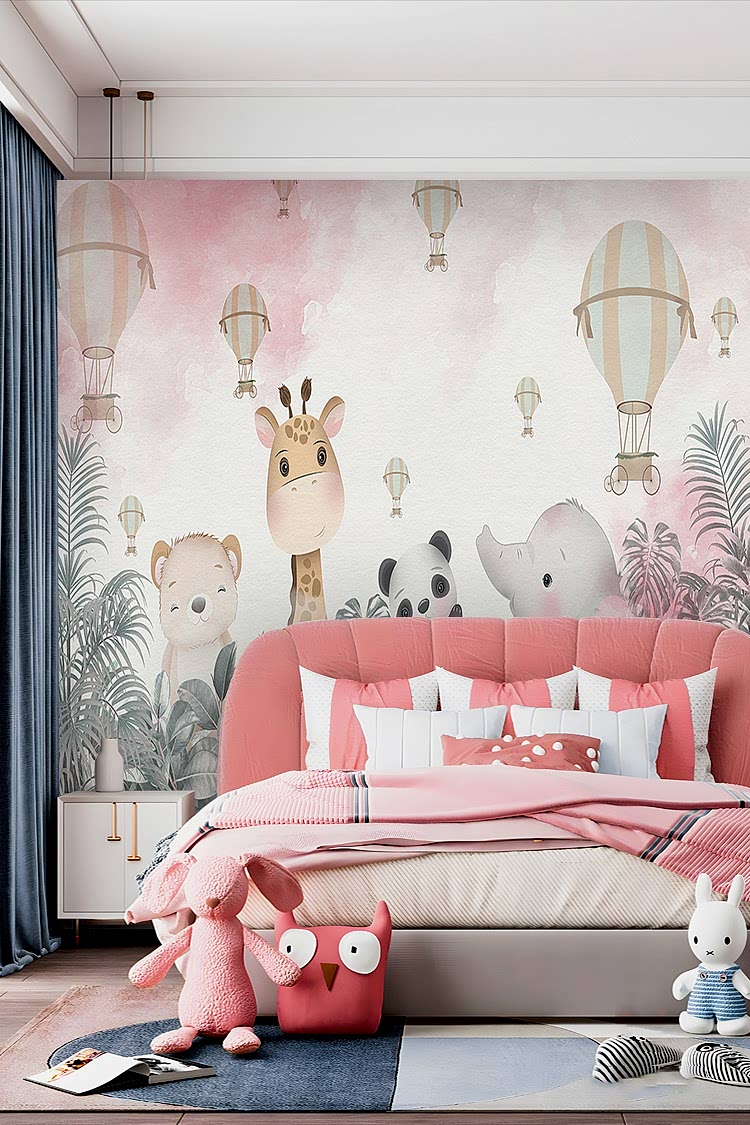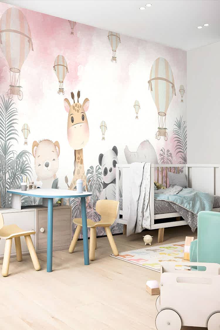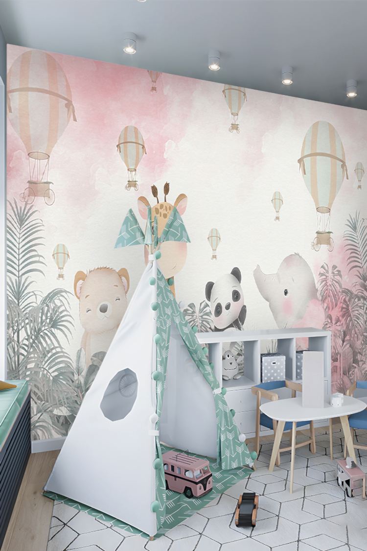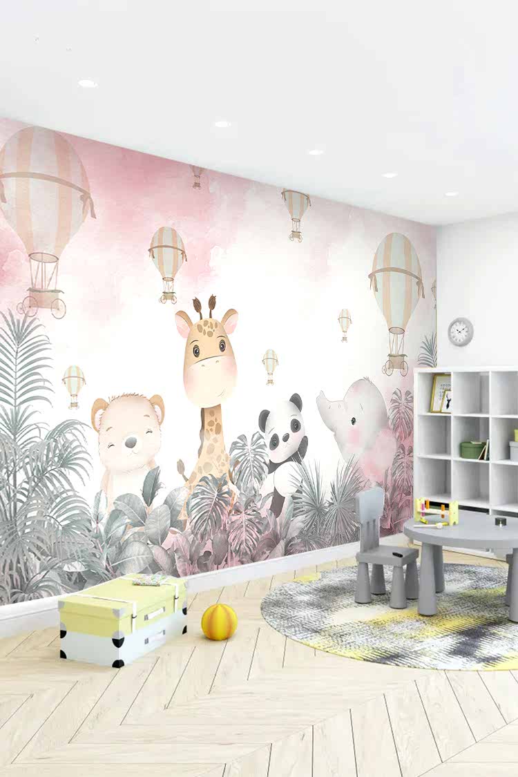 Sevimli Hayvanlar ve Uçan Balonlar Duvar Kağıdı
