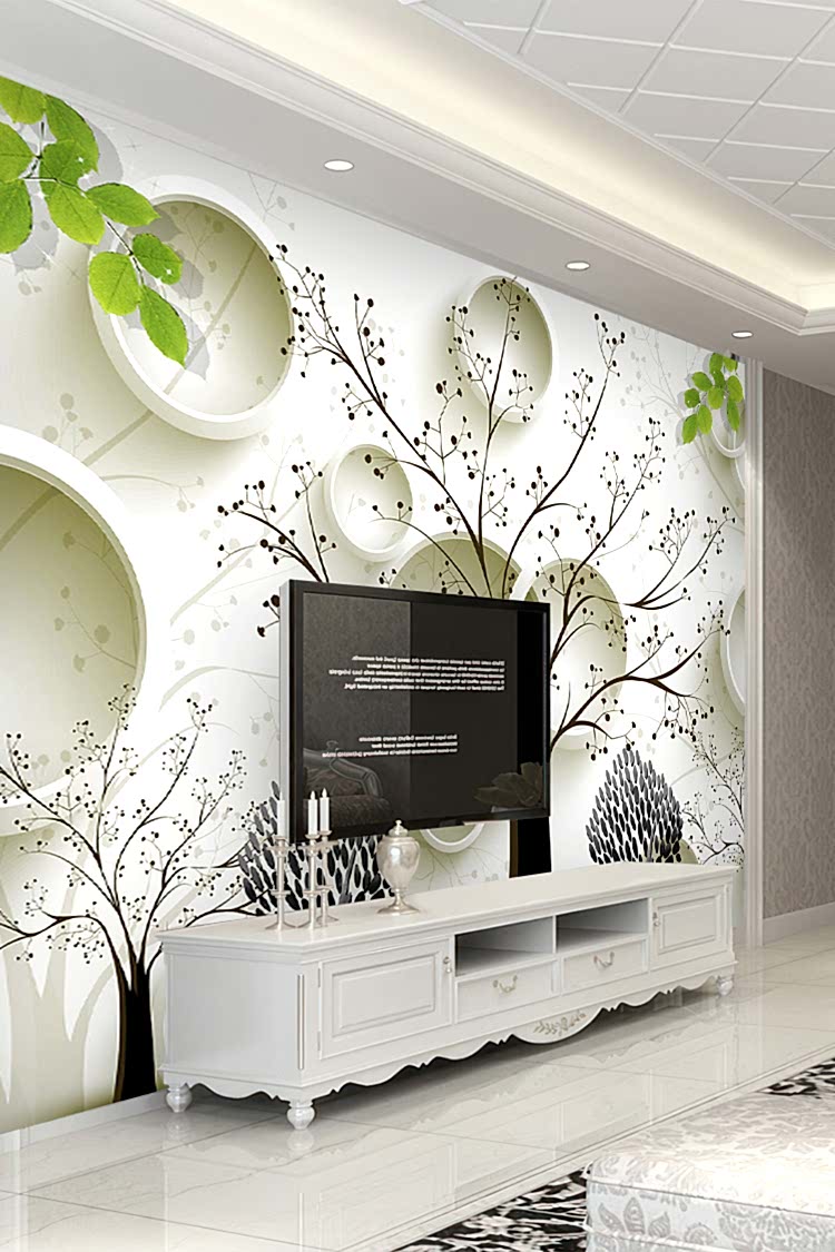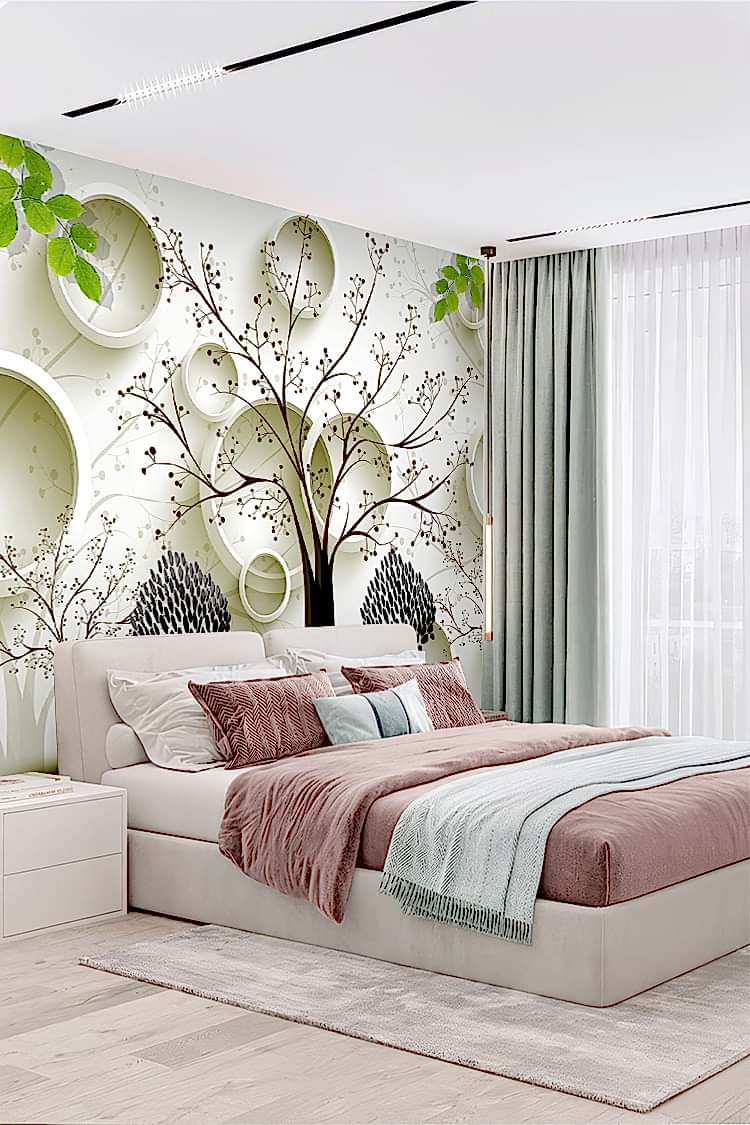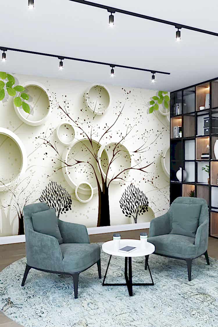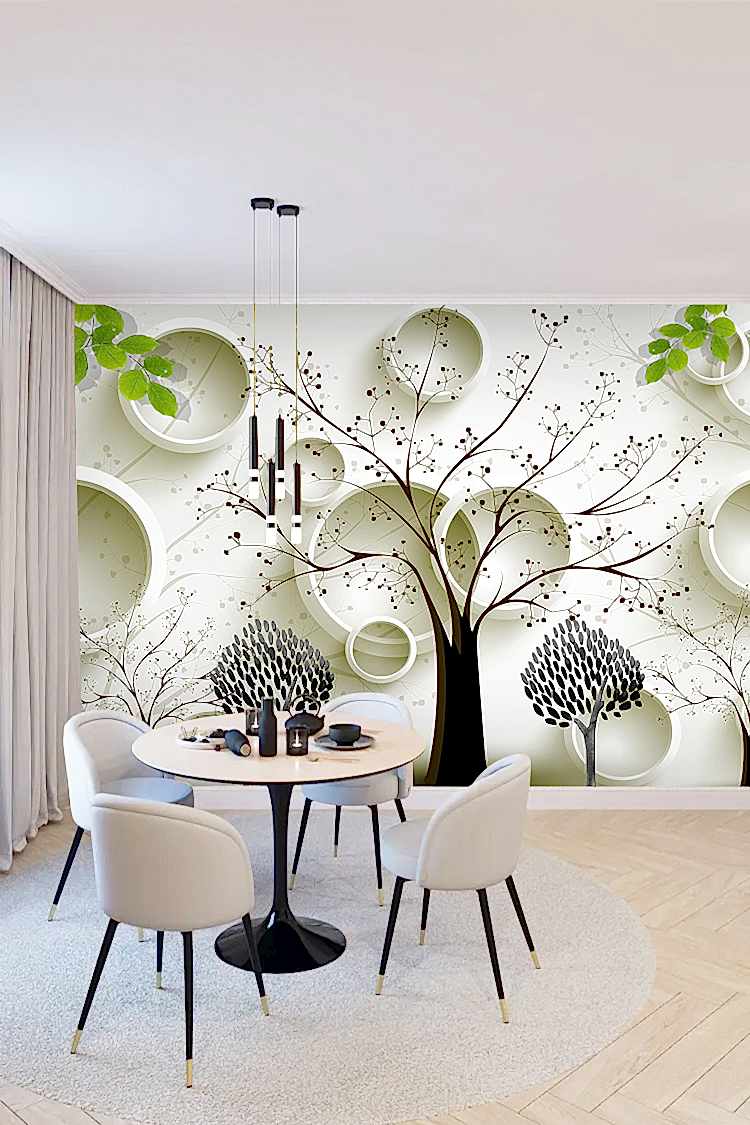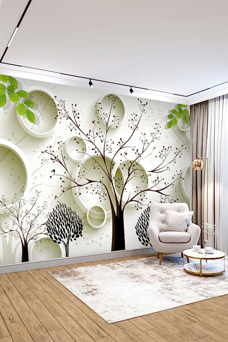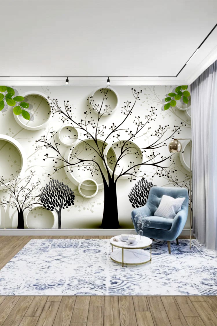 Siyah Beyaz Ağaç Deseni ve Modern Geometrik Duvar Kağıdı