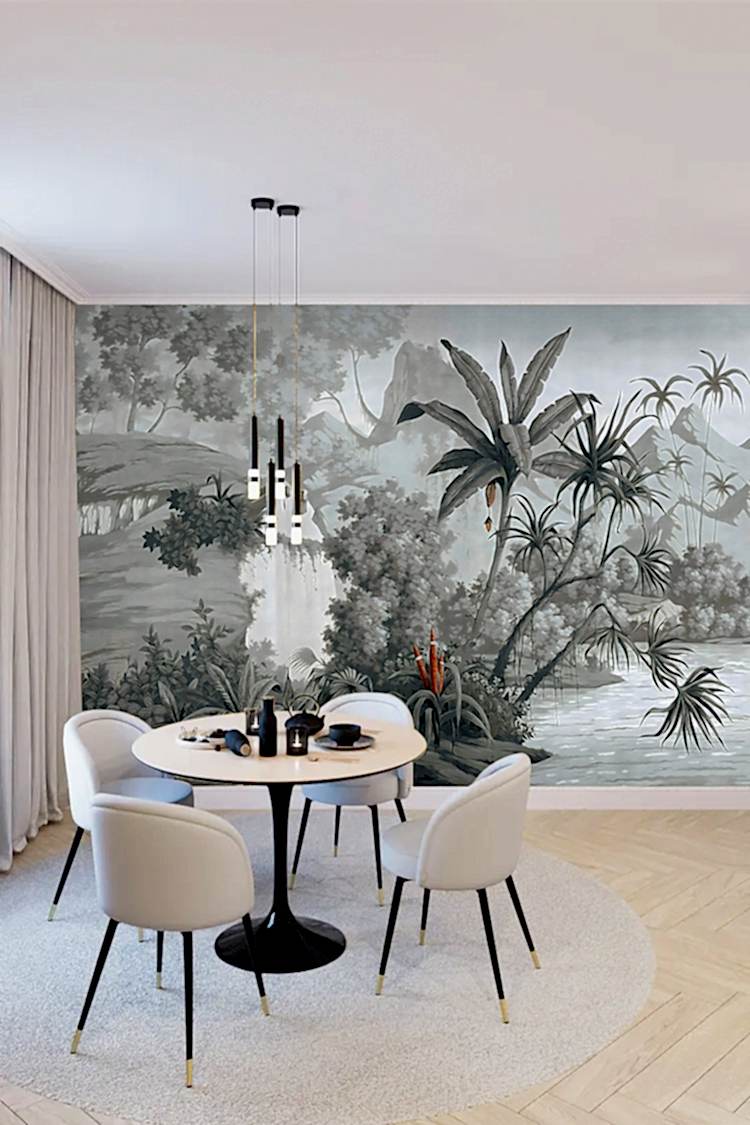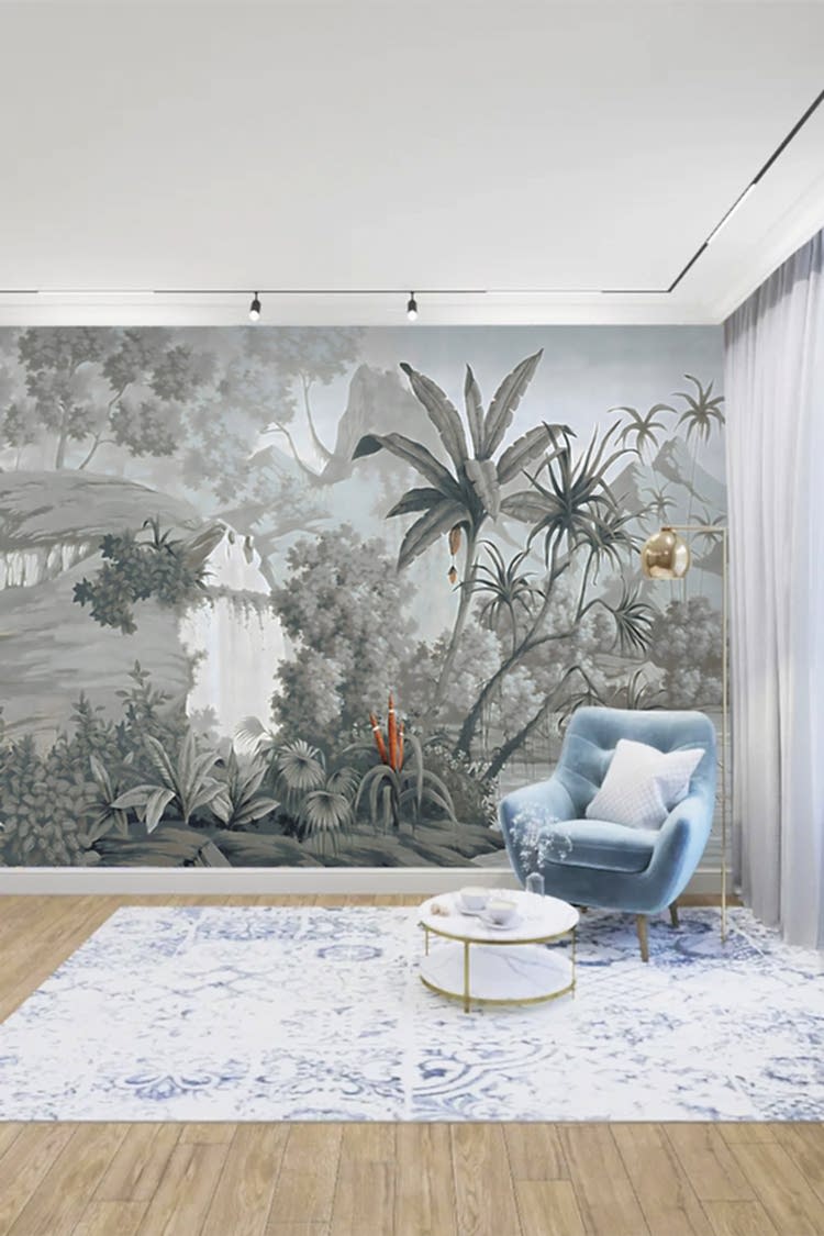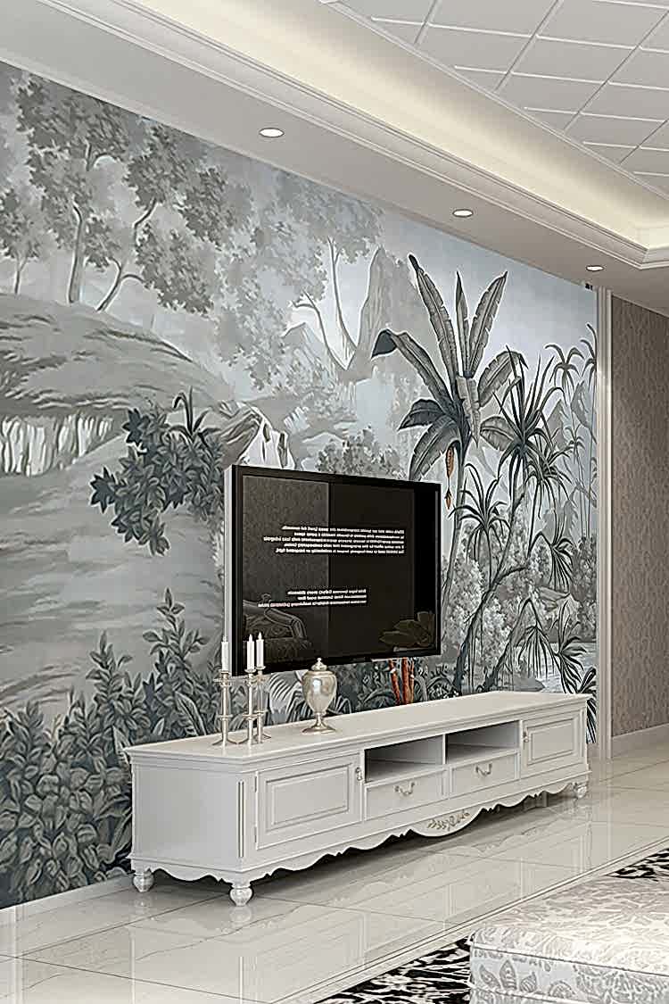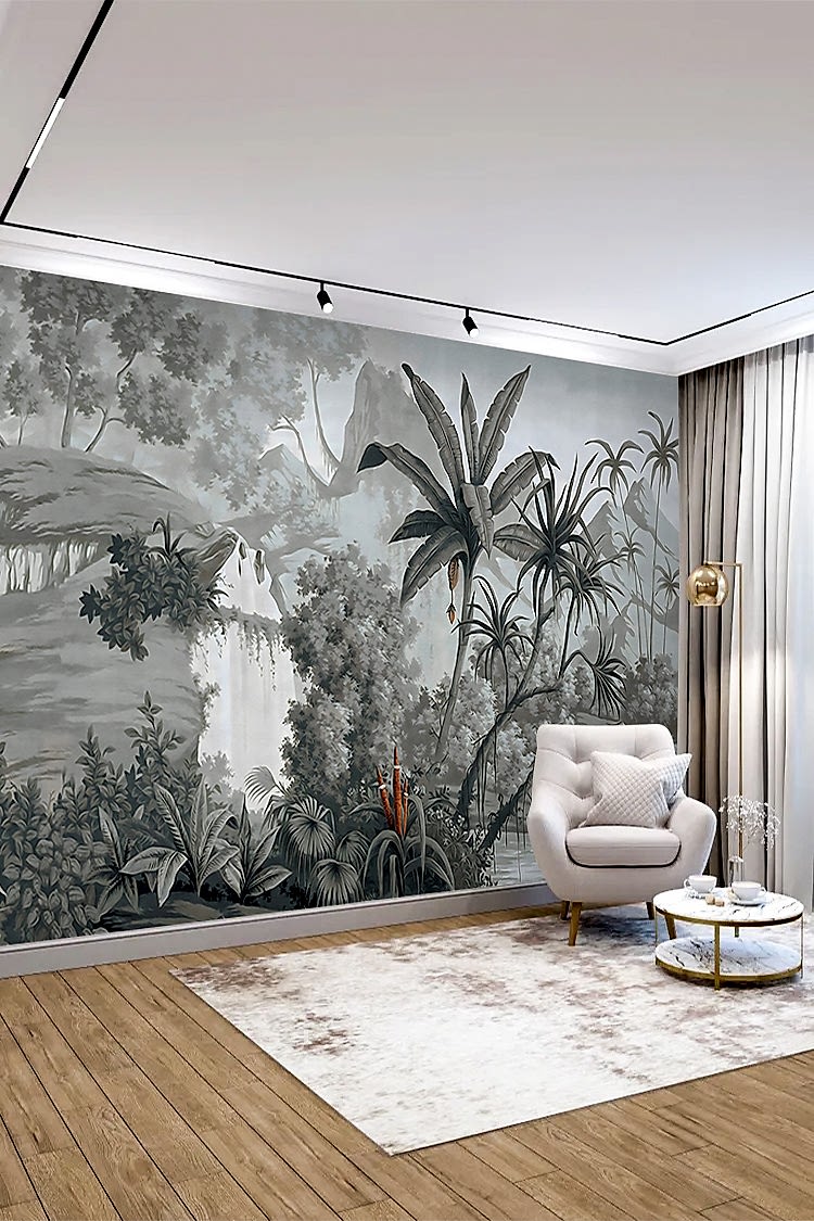 Siyah-Beyaz Tropikal Bitki Duvar Kağıdı