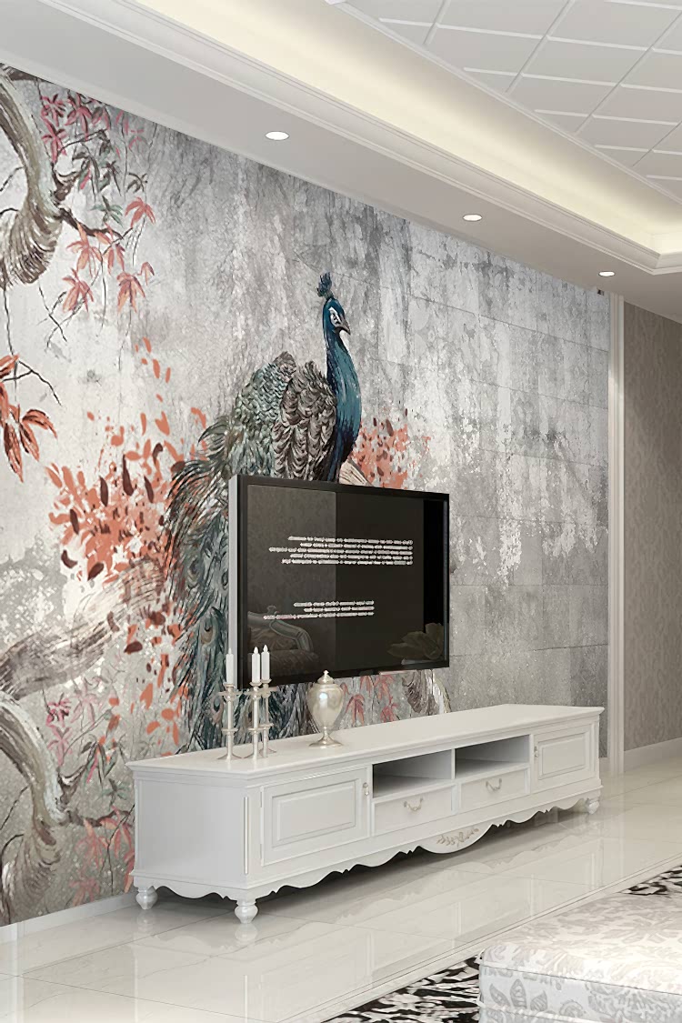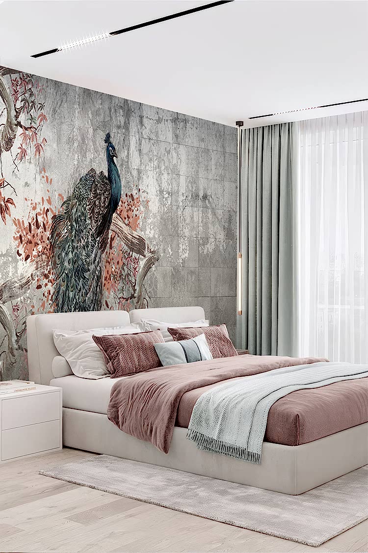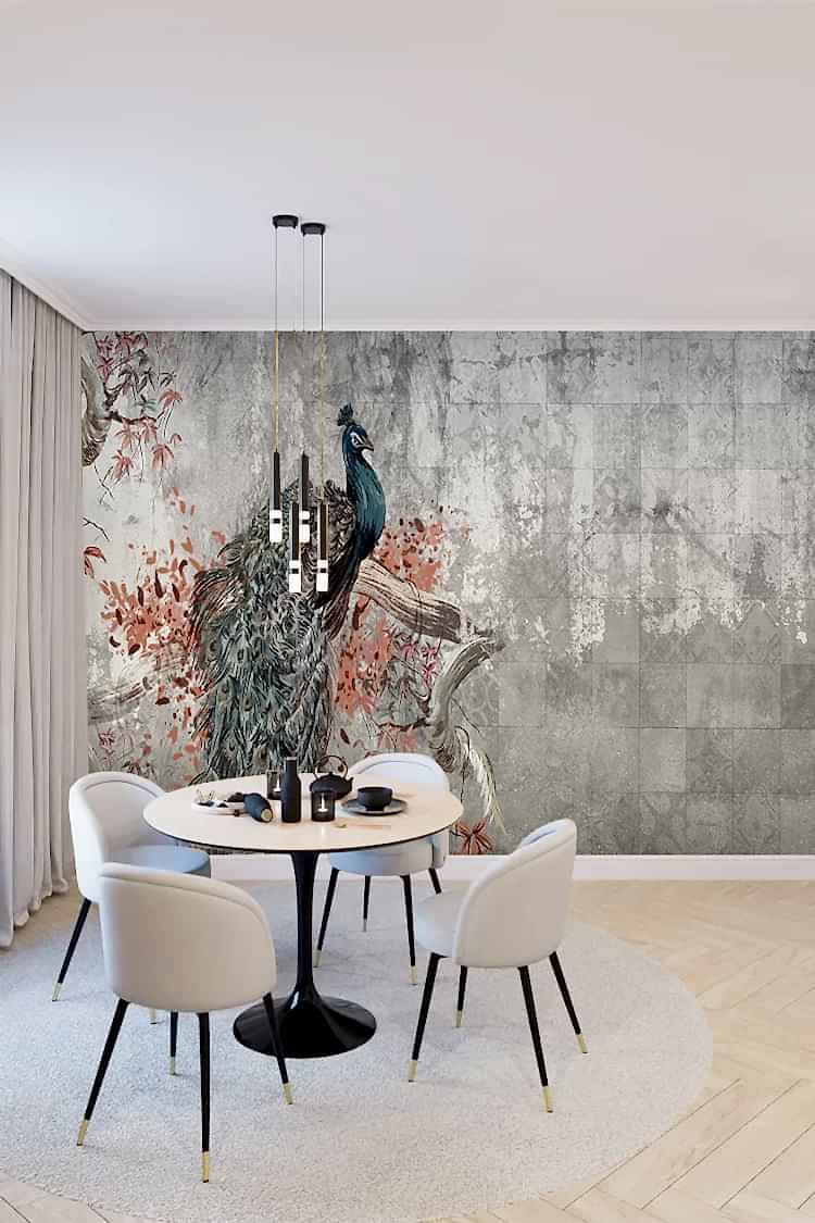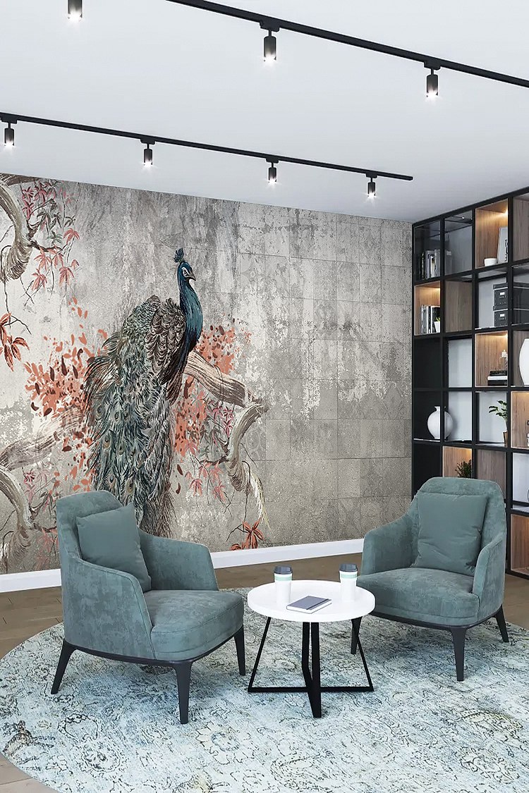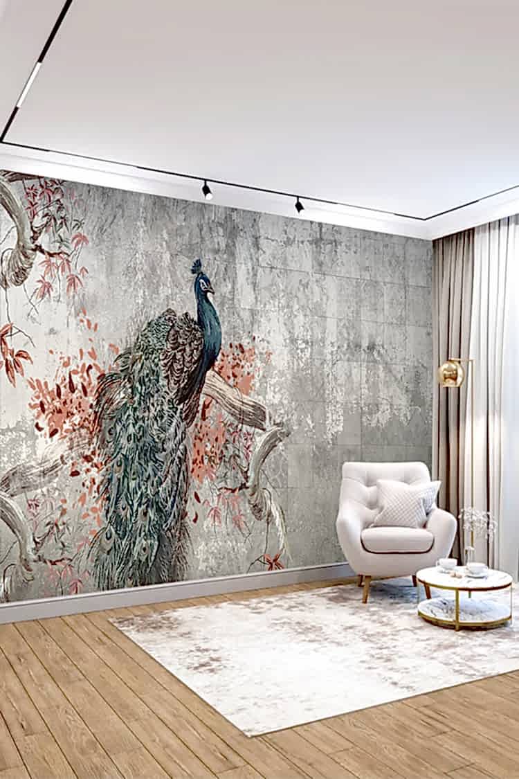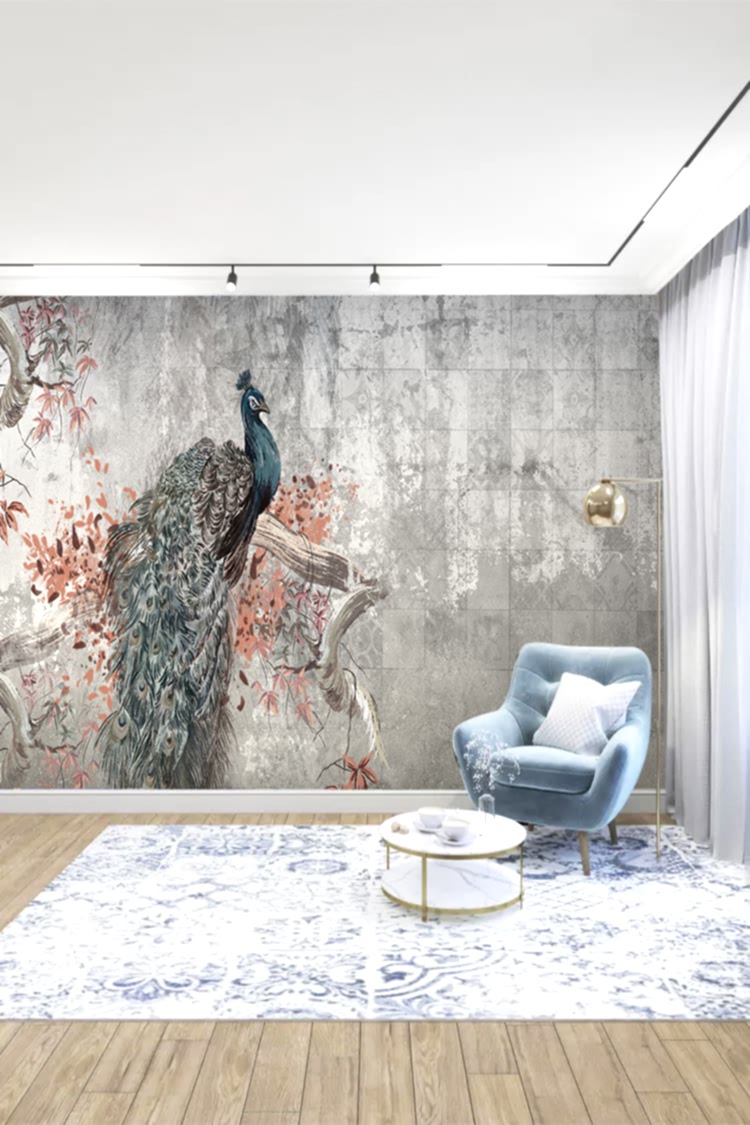 Tavuskuşu ve Çiçek Desenli Duvar Kağıdı