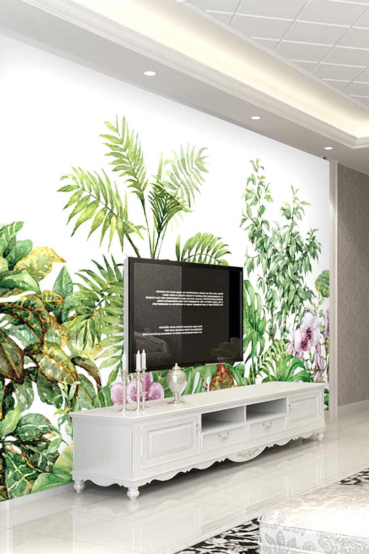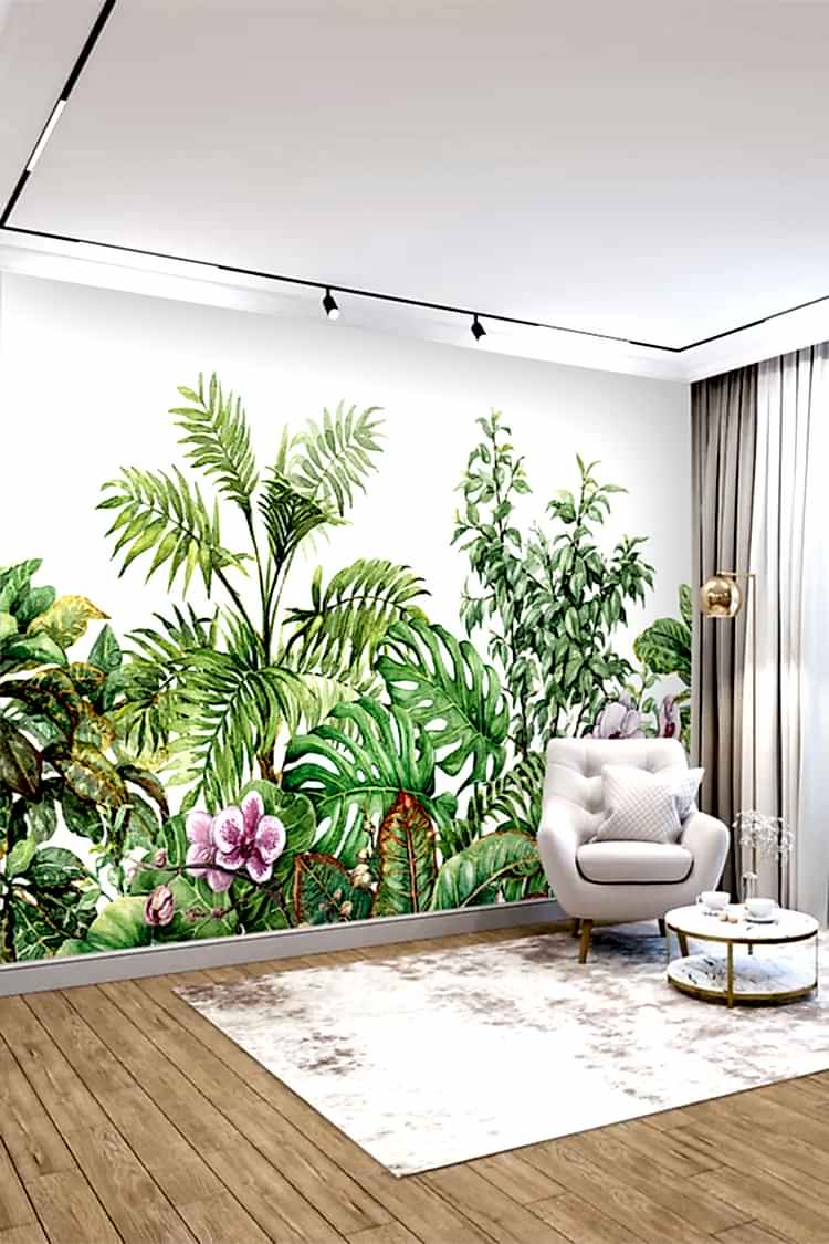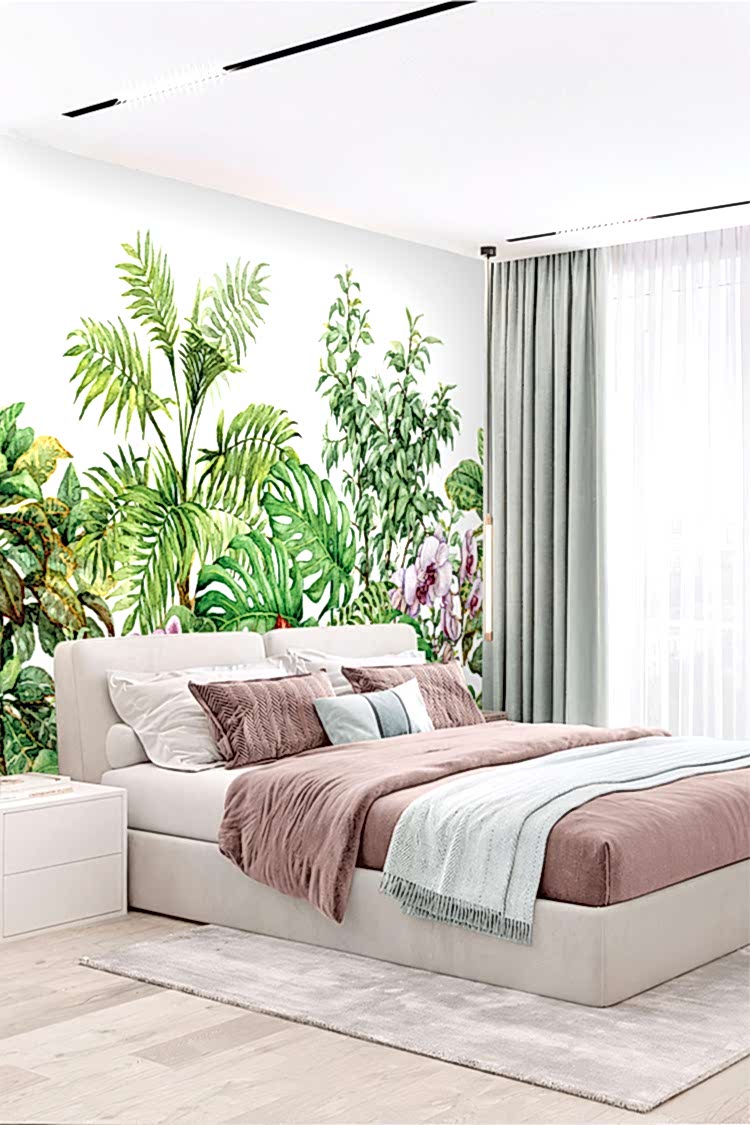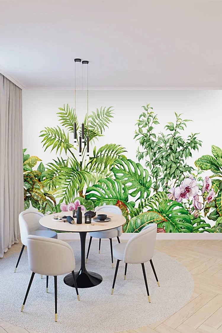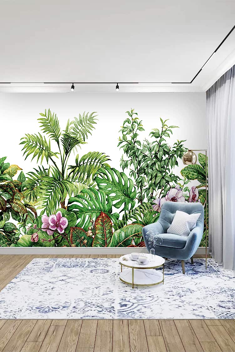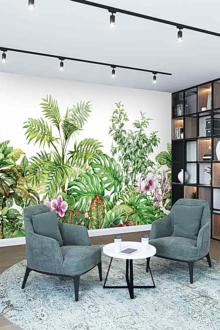 Tropikal Bitkiler ve Orkide Çiçekli Duvar Kağıdı