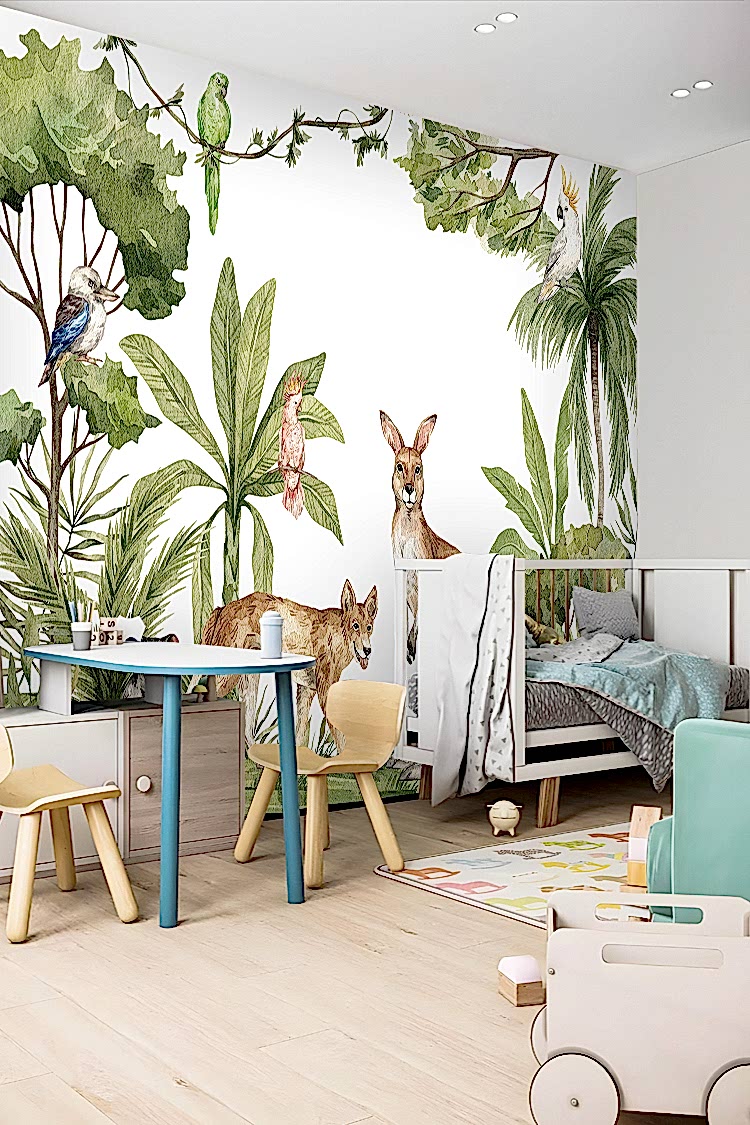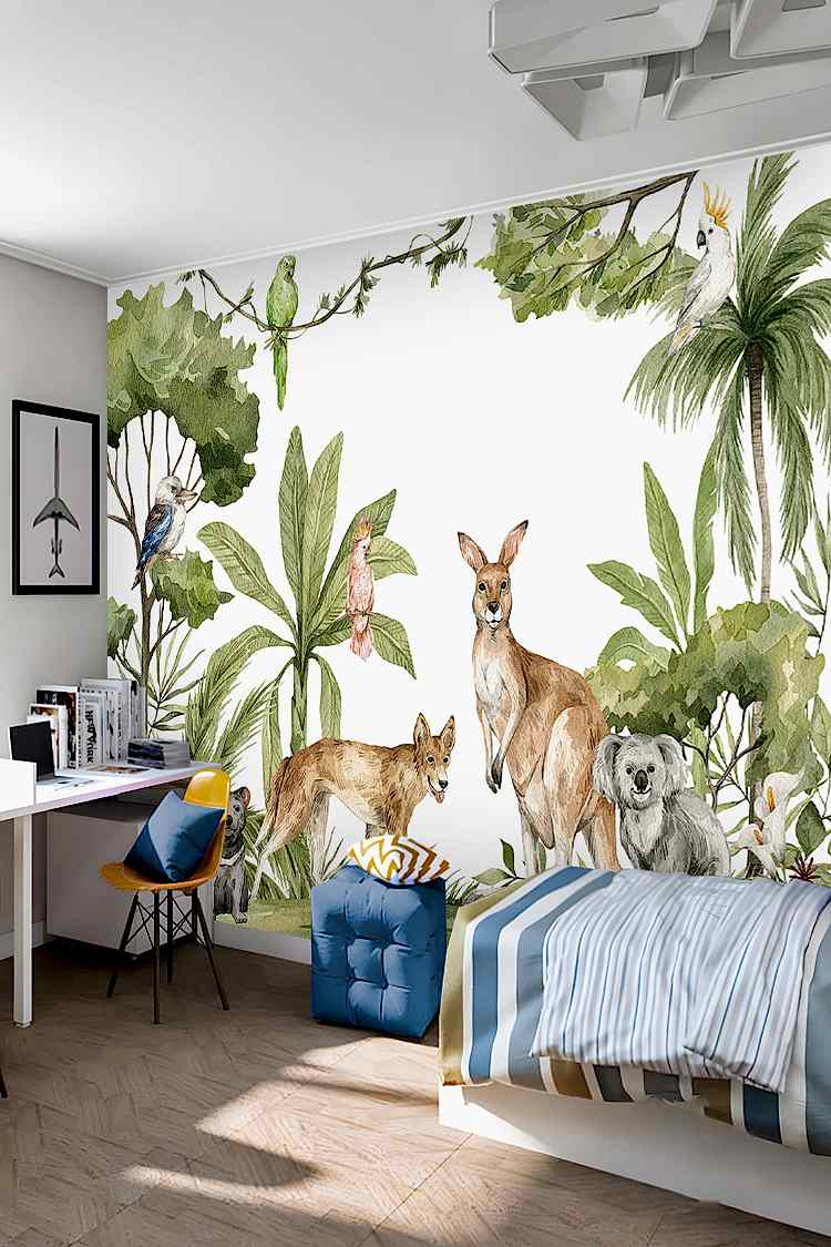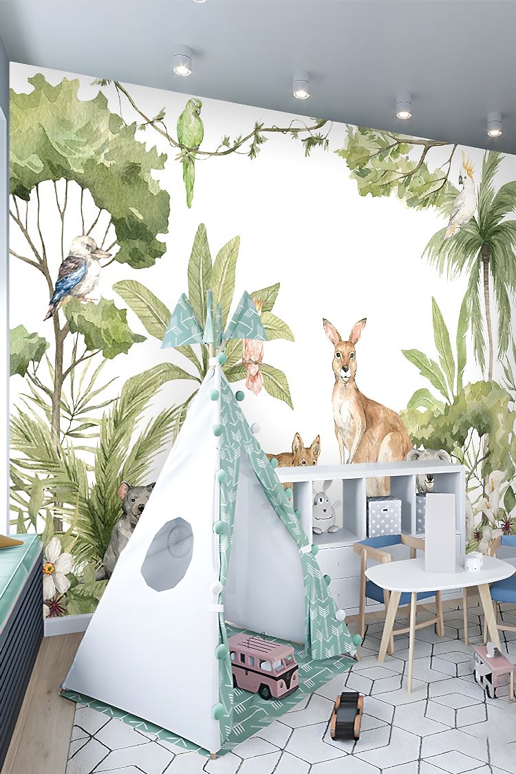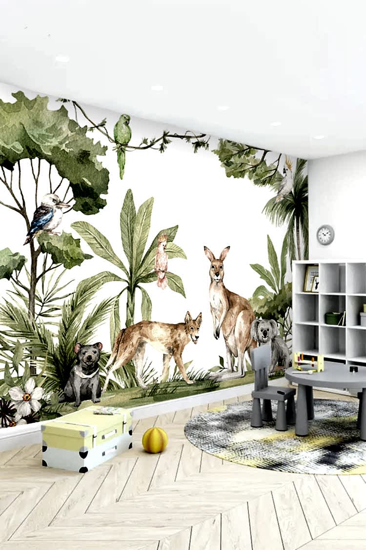 Tropikal Hayvanlar ve Bitkilerle Duvar Kağıdı