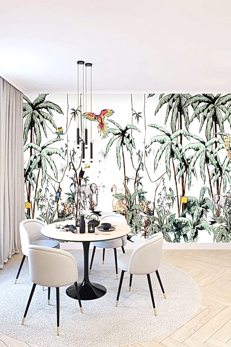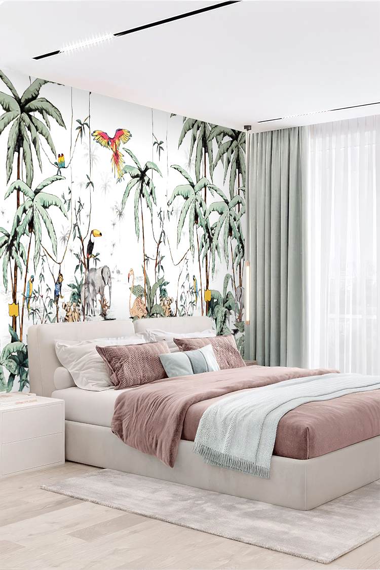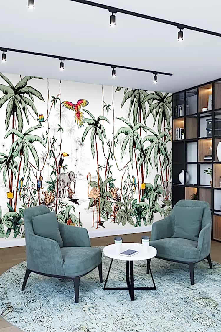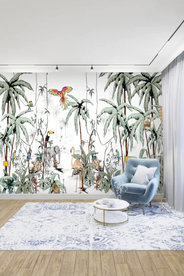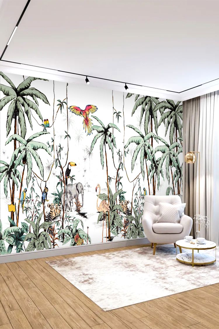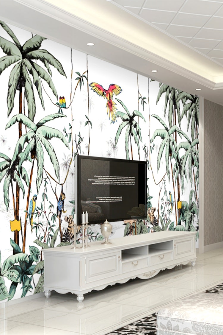 Tropikal Hayvanlar ve Palmiyelerle Duvar Kağıdı
