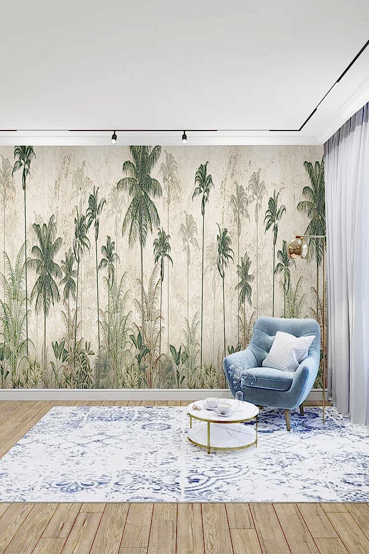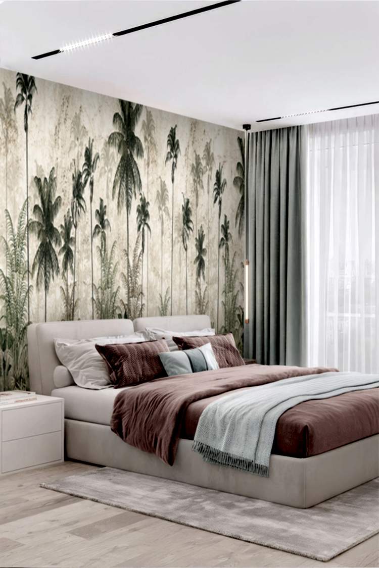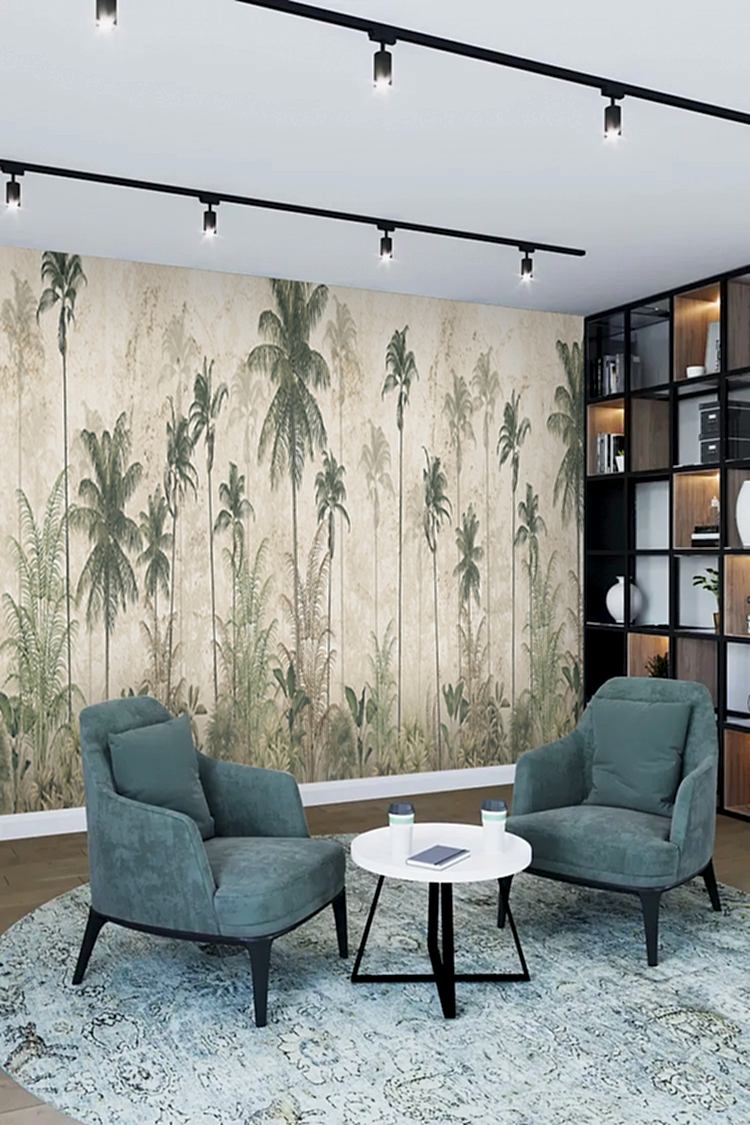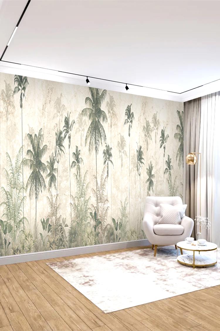 Tropikal Palmiye ve Doğal Bitki Desenli Duvar Kağıdı