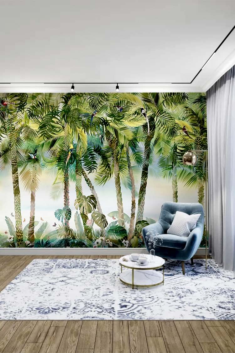 Tropikal Palmiyeler ve Doğa Desenli Duvar Kağıdı