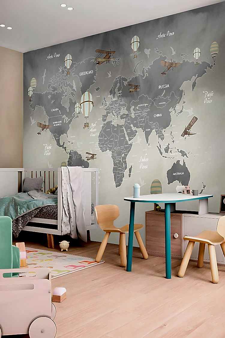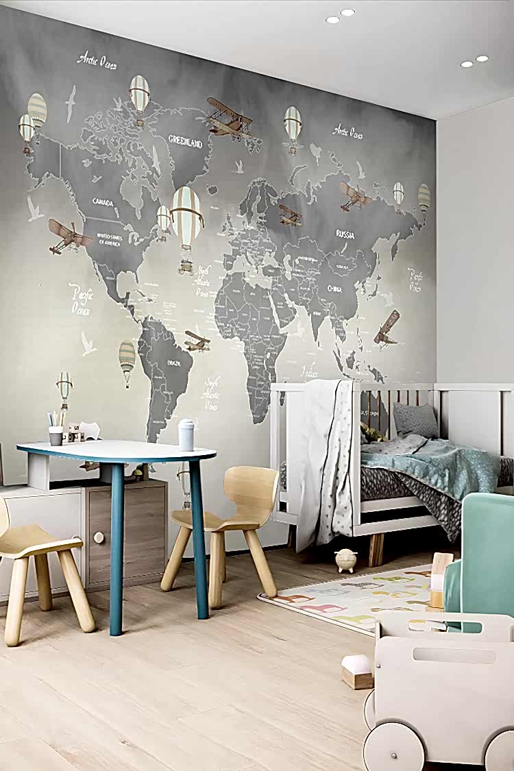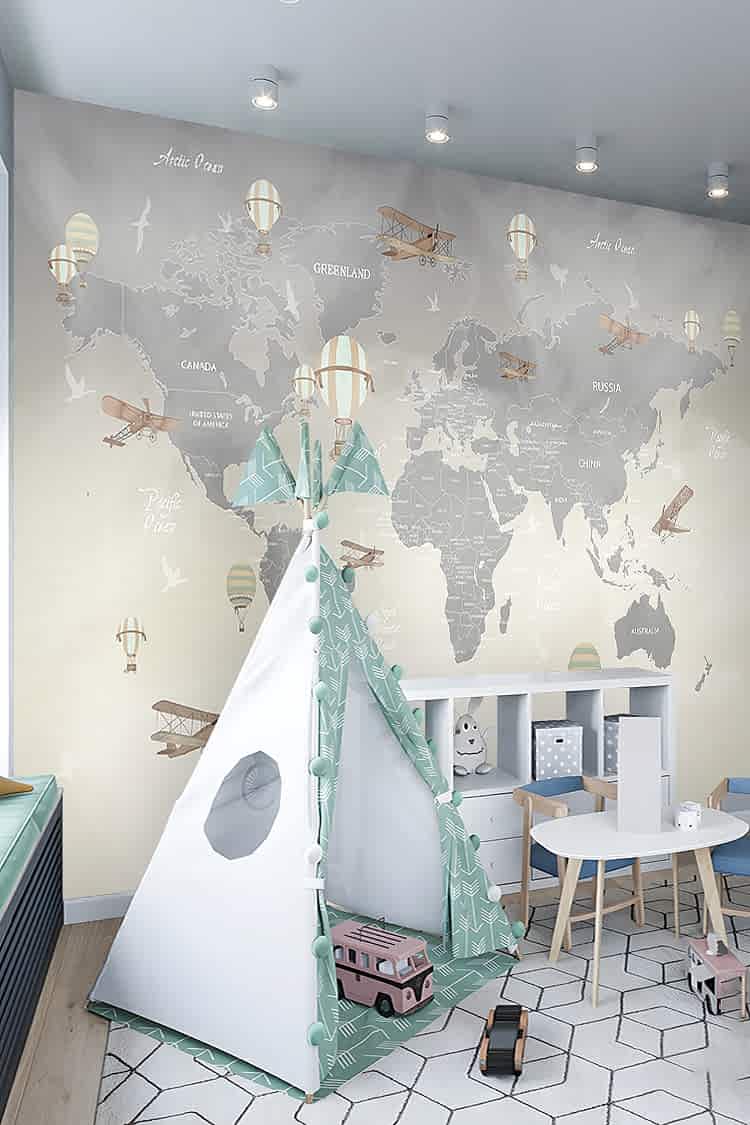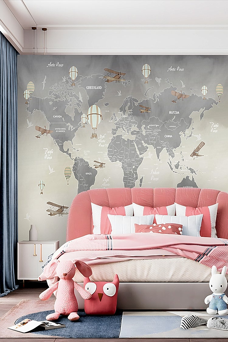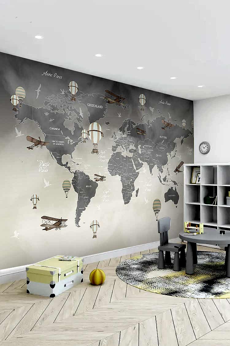 Uçan Balonlar ve Dünya Haritası Duvar Kağıdı