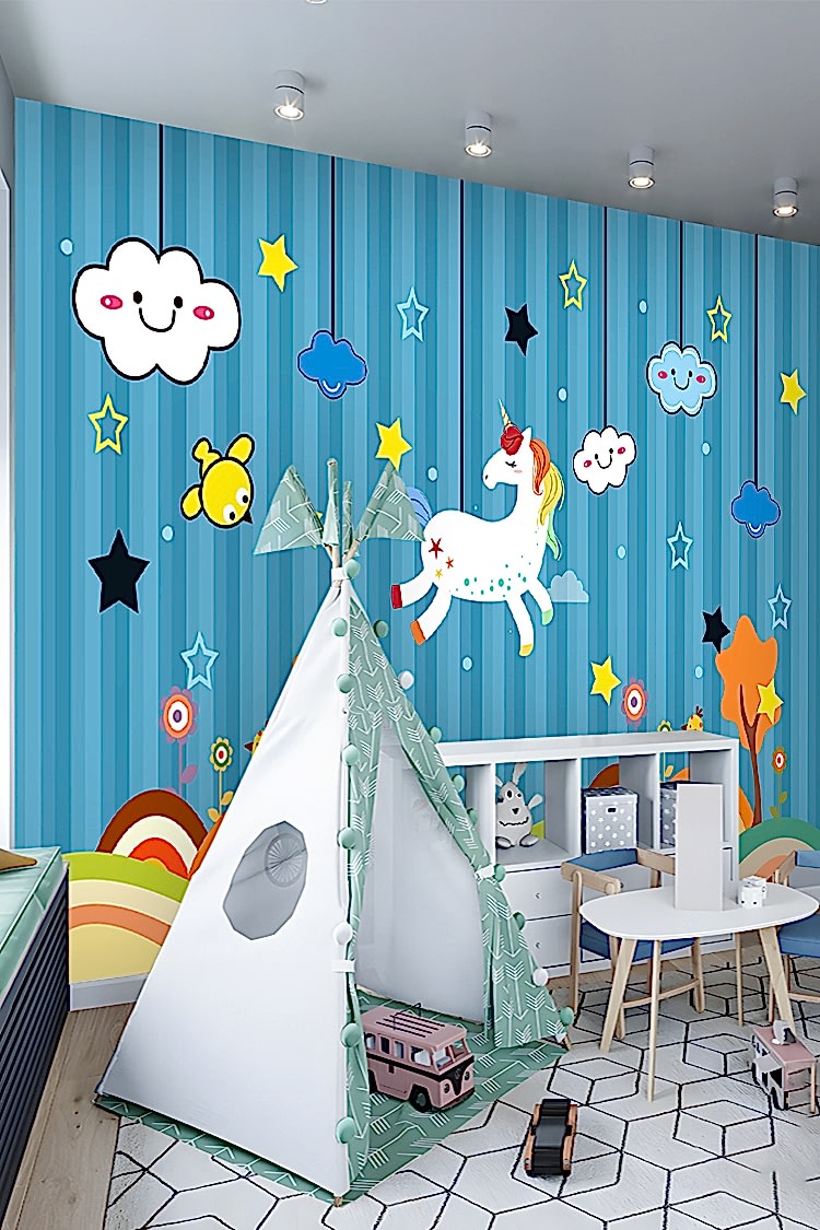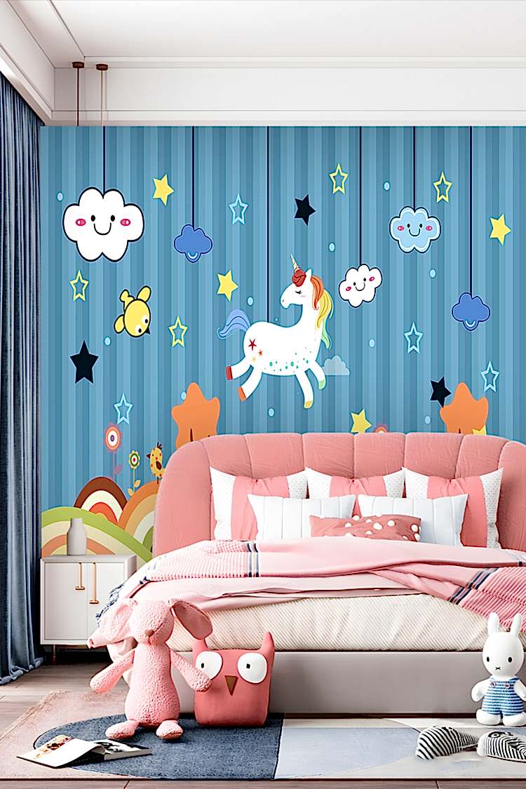 Unicorn ve Yıldız Desenli Çocuk Duvar Kağıdı